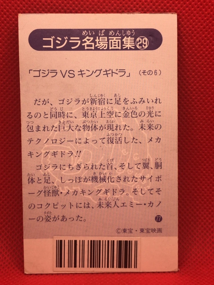 Godzilla King Gidorah card 4inch Barcode Battler vintage No.77 rare TOHO