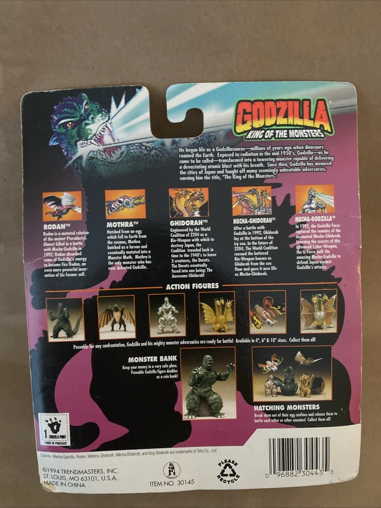 Godzilla King Of The Monsters Godzilla Hatched Action Figure 1994 MOC Package show some small damage around, please see pictures for more details.