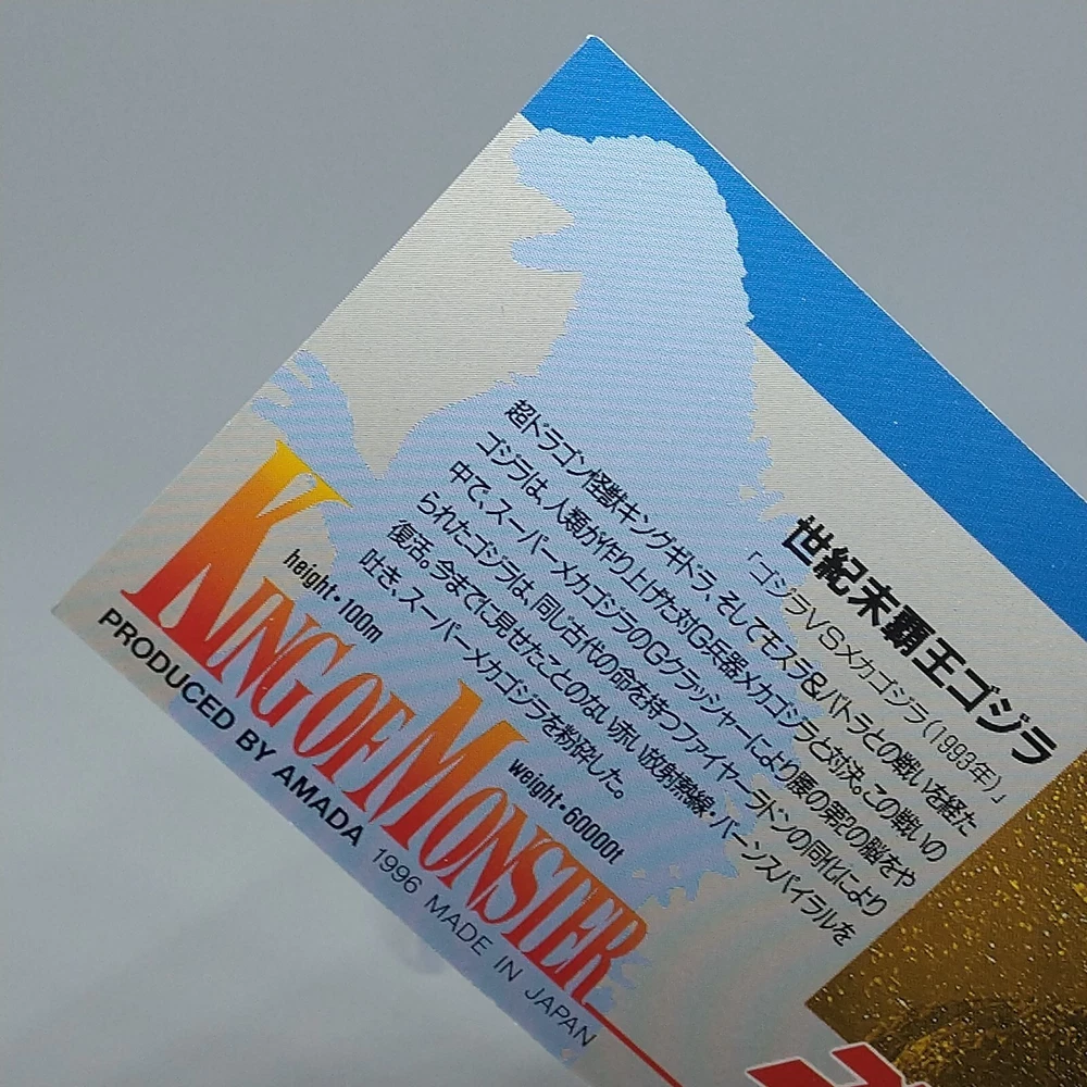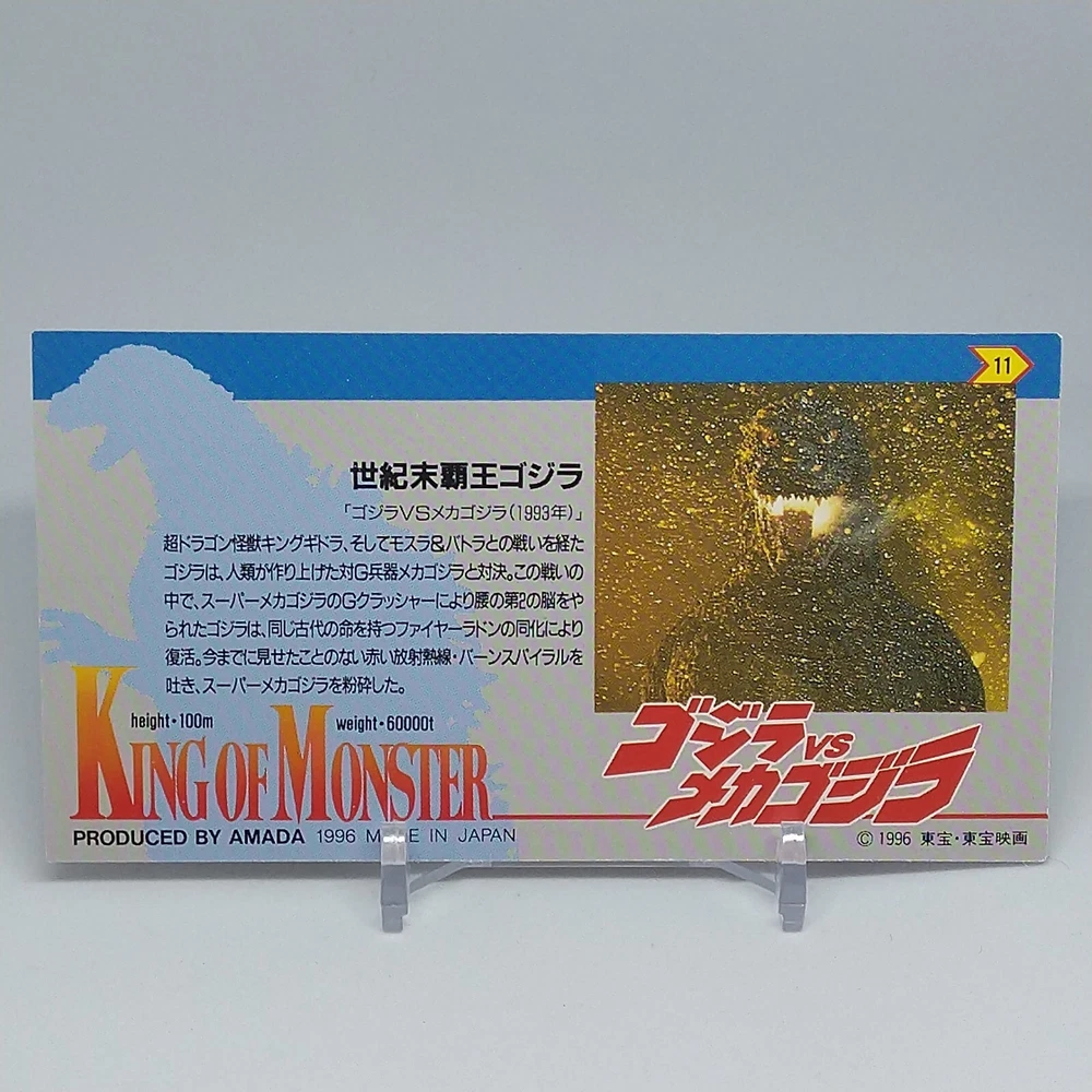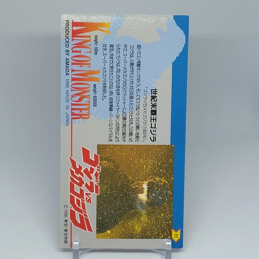 Godzilla King of Monster Amada Wide Collection Trading Card No.11 Holo 1996 Description Please see the picture for the details of damages and dirt or ask us before your purchase. 100% Authentic or Money Back Guaranteed. (Do not worry you are protected by eBay and eBay Managed Payments) See the pictures for more details. If you have any question about the condition, accessories, or anything about the product, please feel free to message us. We are glad to answer all your concerns. Payment Same as ebay payment method. Shipping Economy shipping: Delivery time will be about 11 - 23 days. Standard shipping: Delivery time will be about 5 - 10 days. Expedited shipping: Delivery time will be about 1 - 4 days. Terms of Sale Money back guarantee within 30 days if returned by customer. We would not be able to accept your bid if you; 1) Don't have a PayPal account. 2) Have unpaid items reported. 3) Have a primary shipping address in countries you don't ship to. 4) Have reportedly violated eBay policies. 5) Have a Feedback score lower than the number you specify. International Buyers - Please Note: Import duties, taxes and charges are not included in the item price or shipping charges. These charges are the buyer's responsibility. Please check with your country's customs office to determine what these additional costs will be prior to bidding/buying. These charges are normally collected by the delivering freight (shipping) company or when you pick the item up - do not confuse them for additional shipping charges.