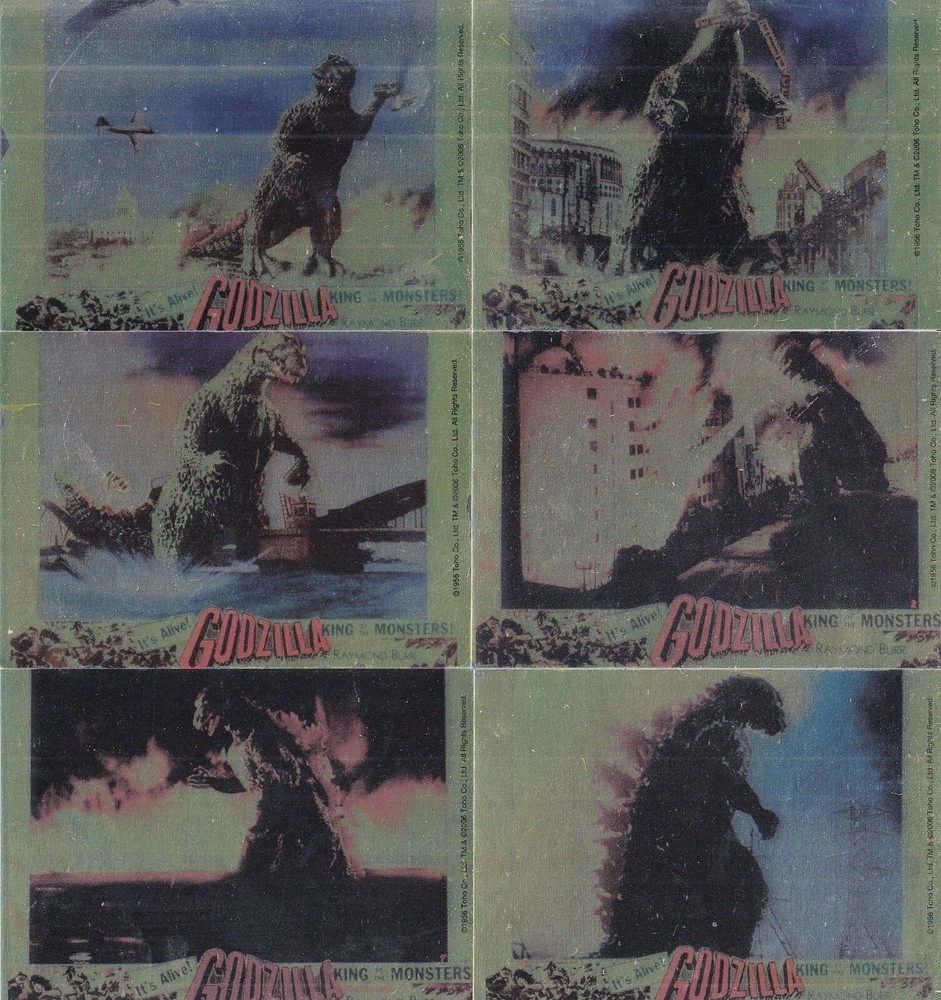 YOU ARE VIEWING A 2006 NEAR MINT CONDITION GODZILLA KING OF MONSTERS GOLD FOIL PUZZLE COMPLETE INSERT CARD SET OF 6 NOTE: PICTURED THE FRONT AND THE BACKS OF THE CARDS FROM: COMIC IMAGES Set Composition: Insert Card Set (6 cards 1 - 6) NOTE: PICTURED CARDS SHOWN IS THE COMPLETE INSERT CARD SET NOTE: PICTURED ITEM REPRESENTS ACTUAL ITEM SHIPPED Thanks for viewing. We discount shipping for multiple items, check our auctions for information. Please be advised that we are closed weekends and holidays. If you should win/purchase any of our items over the weekend, we will process your order on Monday for shipping arrangements and payments. Thank you!!! PAYMENT INFORMATION Payments must be received within 7 days SHIPPING INFORMATION United States Buyers: Receive FREE shipping via USPS. UPS may be used on very large orders. ALL INTERNATIONAL BUYERS Ebay will handle your order using the global shipping program. Your order will ship from Kentucky, USA. Please check out our other items! Be sure to add me to your favorites list ! Stores