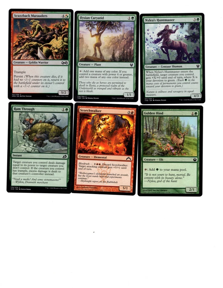 GODZILLA, KING OF THE MONSTERS! POWER INCARNATE! MASTER OF MYTHICAL CREATURES! GENERAL IN THIS 100 CARD EDH/COMMANDER DECK! CAN YOU SMELL YOUR OPPONENTS FEAR? Cards are in near mint to light play condition and may be from sets other than ones pictured above. Deck will ship within 2 business days of cleared payment and in a padded envelope with tracking! Deck List: 1 Garruk, Primal Hunter 1 Godzilla, King of the Monsters 1 Moonveil Dragon 1 Boon Satyr 1 Crater's Claws 1 Domri, Anarch of Bolas 1 Giant Solifuge 1 Gigapede 1 Godzilla, Doom Inevitable 1 Hunted Troll 1 Loxodon Warhammer 1 Momentous Fall 1 Ogre Battledriver 1 Phytotitan 1 Quartzwood Crasher 1 Sarkhan's Unsealing 1 Thunderblust 1 Where Ancients Tread 1 Alpine Guide 1 Anax, Hardened in the Forge 1 Beanstalk Giant 1 Beneath the Sands 1 Colossal Majesty 1 Conifer Strider 1 Cultivate 1 Elvish Mystic 1 Embereth Paladin 1 Ferocity of the Wilds 1 Flametongue Kavu 1 Furious Rise 1 Garruk's Packleader 1 Godzilla, Primeval Champion 1 Golden Hind 1 Gruul Cluestone 1 Gruul Locket 1 Gruul Signet 1 Gruul War Chant 1 Harrow 1 Ilysian Caryatid 1 Leaf Gilder 1 Llanowar Elves 1 Loathsome Chimera 1 Nylea's Forerunner 1 Nylea's Huntmaster 1 Proud Wildbonder 1 Ram Through 1 Rubblebelt Rioters 1 Samut, Tyrant Smasher 1 Scorchwalker 1 Scuzzback Marauders 1 Siegebreaker Giant 1 Spitebellows 1 Tilonalli's Crown 1 Valley Rannet 1 Vine Mare 1 Vithian Renegades 1 Warden of the Chained 1 Whisperer of the Wilds 1 Wilderness Elemental 1 Zhur-Taa Druid 20 Forest 20 Mountain ***PICTURES REPRESENT THE CARDS YOU WILL GET UPON PURCHASE. CARDS MAY BE FROM DIFFERENT MAGIC THE GATHERING SETS THEN THE ONES PICTURED***