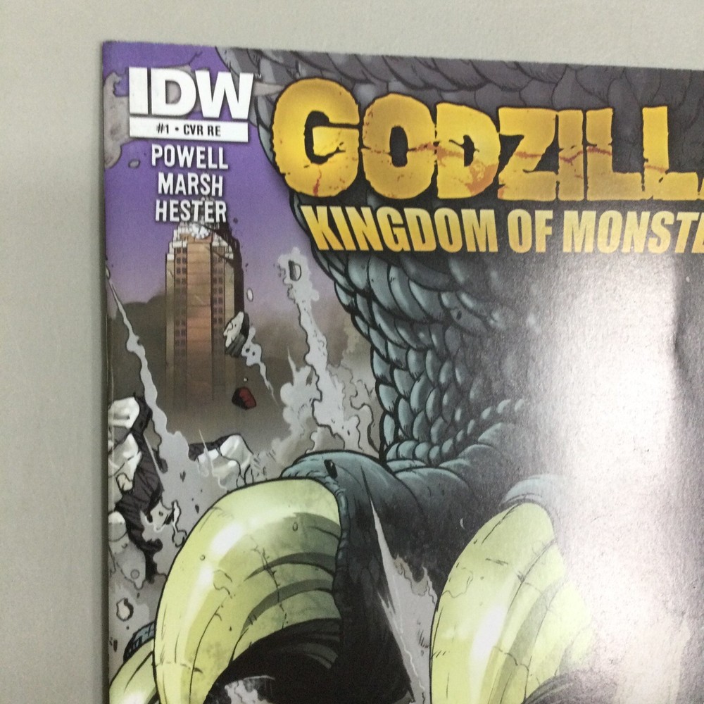 This listing is for the Godzilla Kingdom of Monsters #1 Retailer comic in the pictures. This has scuffing and other imperfections. I am not a grader please see pictures for condition. This comes in a bag and board.