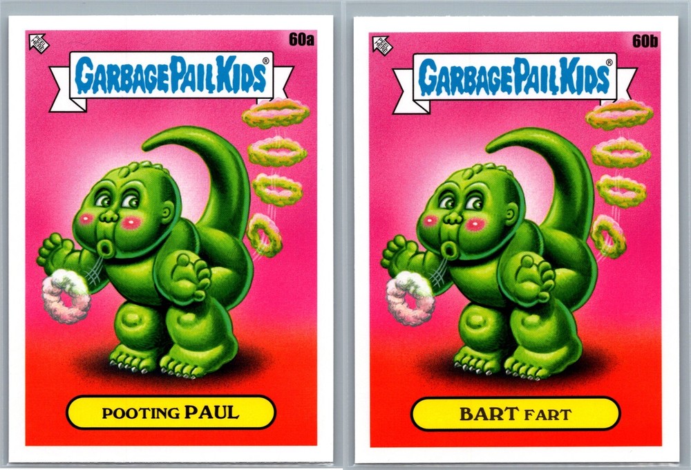 2023 Topps Garbage Pail Kids Series 2 - Intergoolactic Mayhem 2 Card Set - Includes BOTH cards pictured: Pooting Paul 60a & Bart Fart 60b! Perfect for Christmas & Birthday Gifts, Gags and Fun! Check out our Seller Page for more GPK Cards! Images are representative of cards received. These cards are Pack FRESH and in Near Mint (centering and condition) or Better! Shipping Information ***Will ship FAST (I drop off orders at USPS daily before last pickup except Weekends) Item will ship properly in a TOP LOADER/Sleeve with TRACKING! I have years of experience shipping thousands of cards successfully all over the world. ***In order for us to provide affordable GPK Global option, International Shipping will ship via USPS International Basic Mail and may not have tracking depending on value of order.*** Combined Shipping discounts for International!! Affordable rates / Safest Delivery! See reviews **I am not responsible for any custom fees/Import taxes etc. Please contact your local country contacts for any additional Import fees. ***Please FOLLOW our GPK Seller EBAY STORE for exclusive Deals and Promotions.***