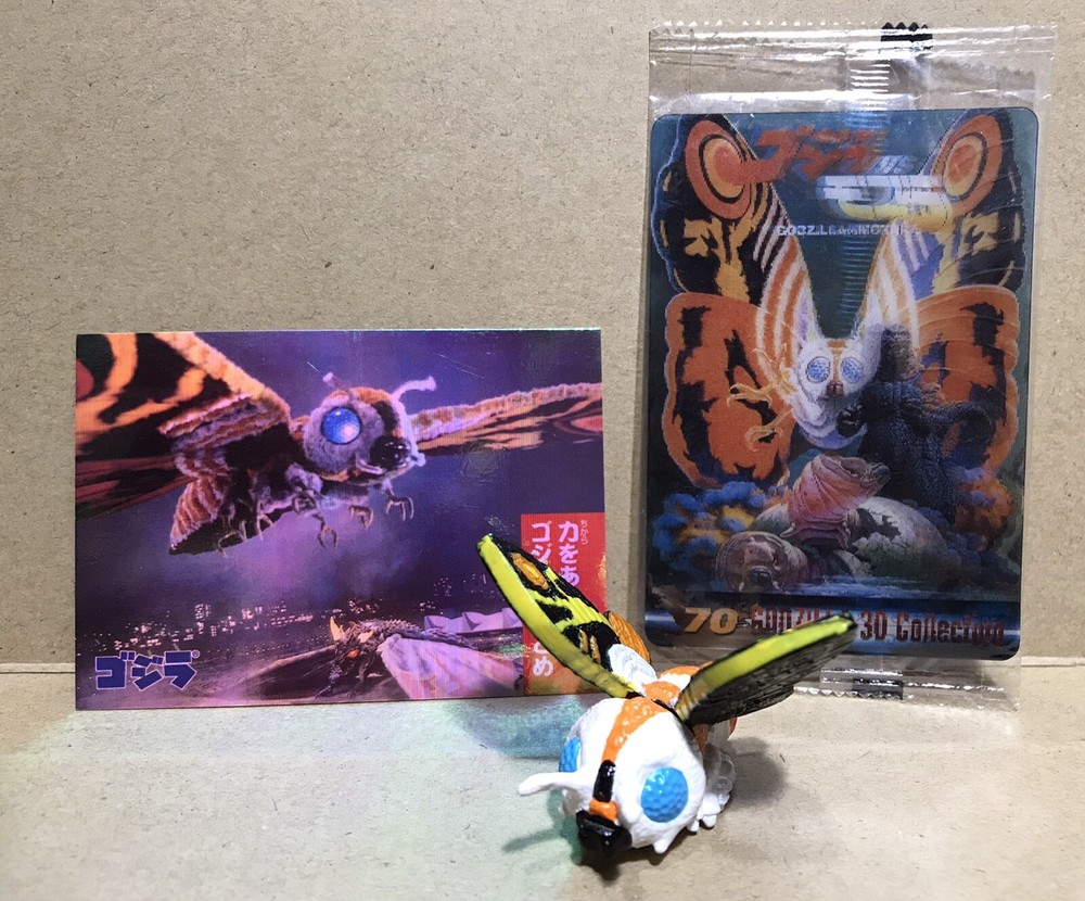 The product is a Godzilla MOTHRA Mini Figure and Holo Cards set manufactured by Bandai. It belongs to the theme of Mothra and is a part of the Godzilla and Monsters categories. The mini figure likely depicts Mothra, the iconic giant moth monster from the Godzilla franchise, and comes with holo cards that may feature images or information related to the character. This toy set would appeal to fans of Godzilla, Mothra, and collectors of robots, monsters, and space toys.