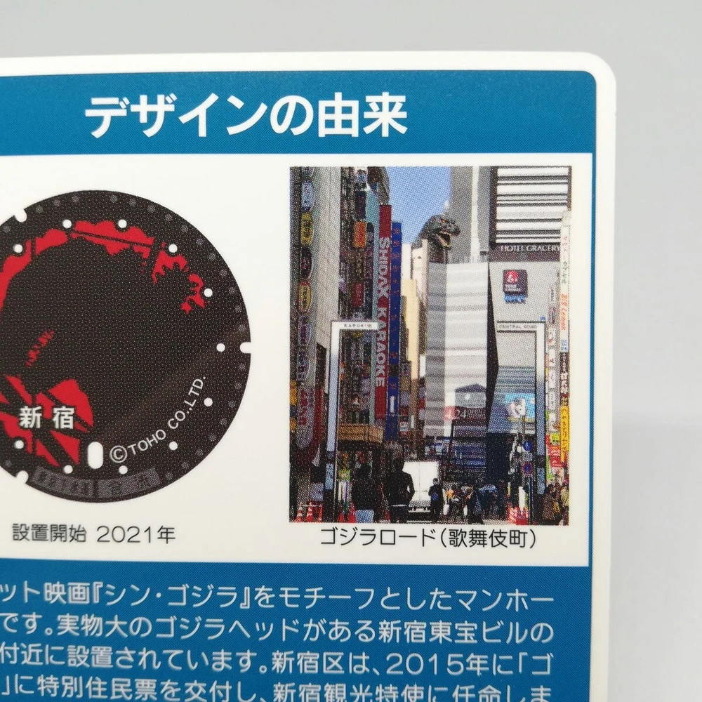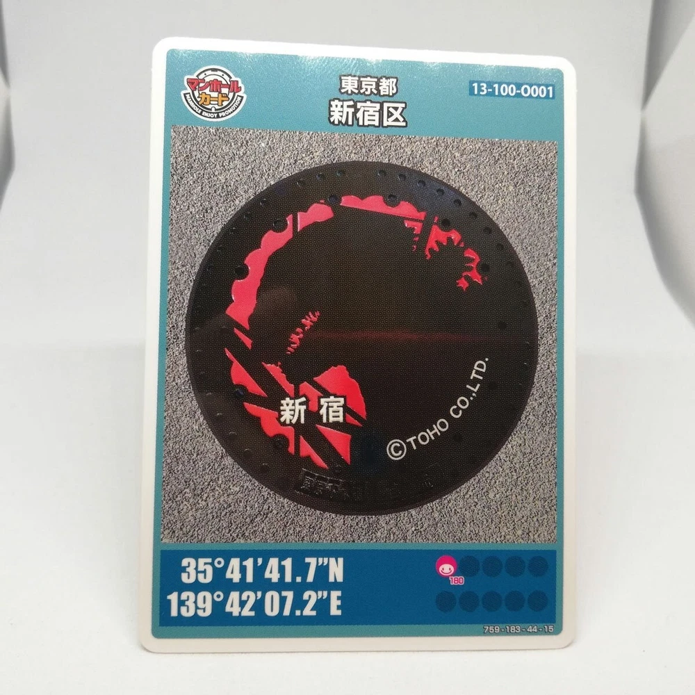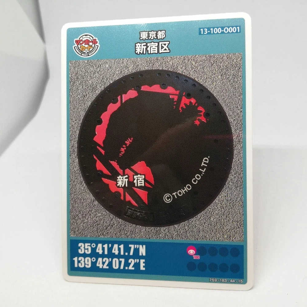 Godzilla Manhole Card Shinjuku Tokyo Location 35.6949N 139.7020E