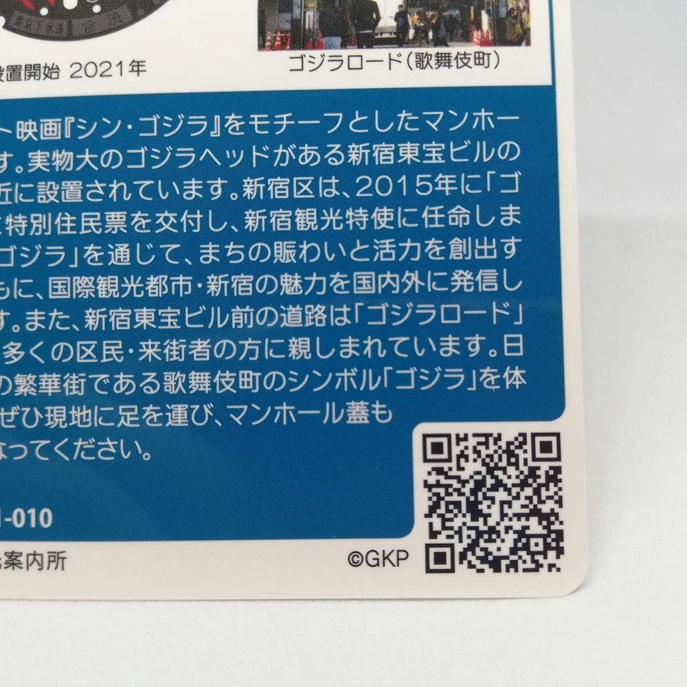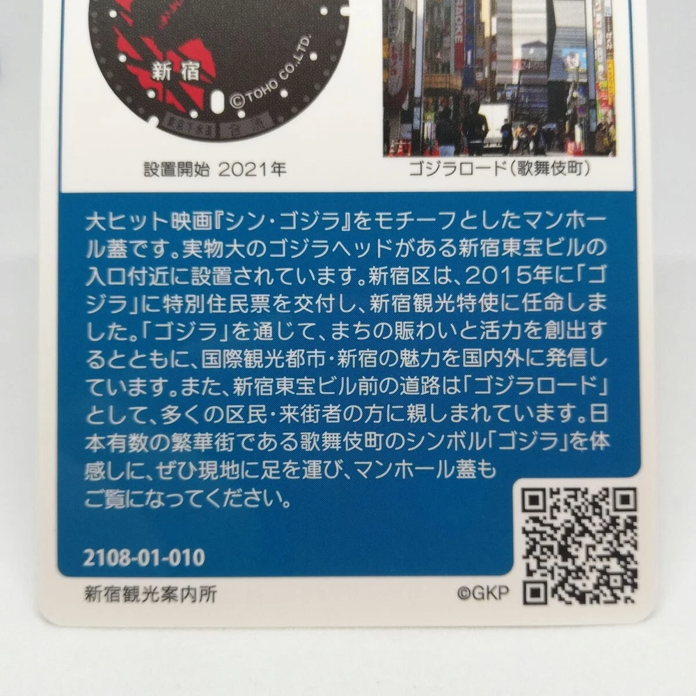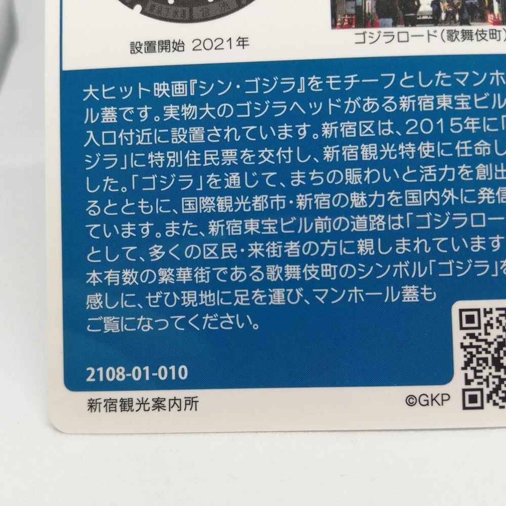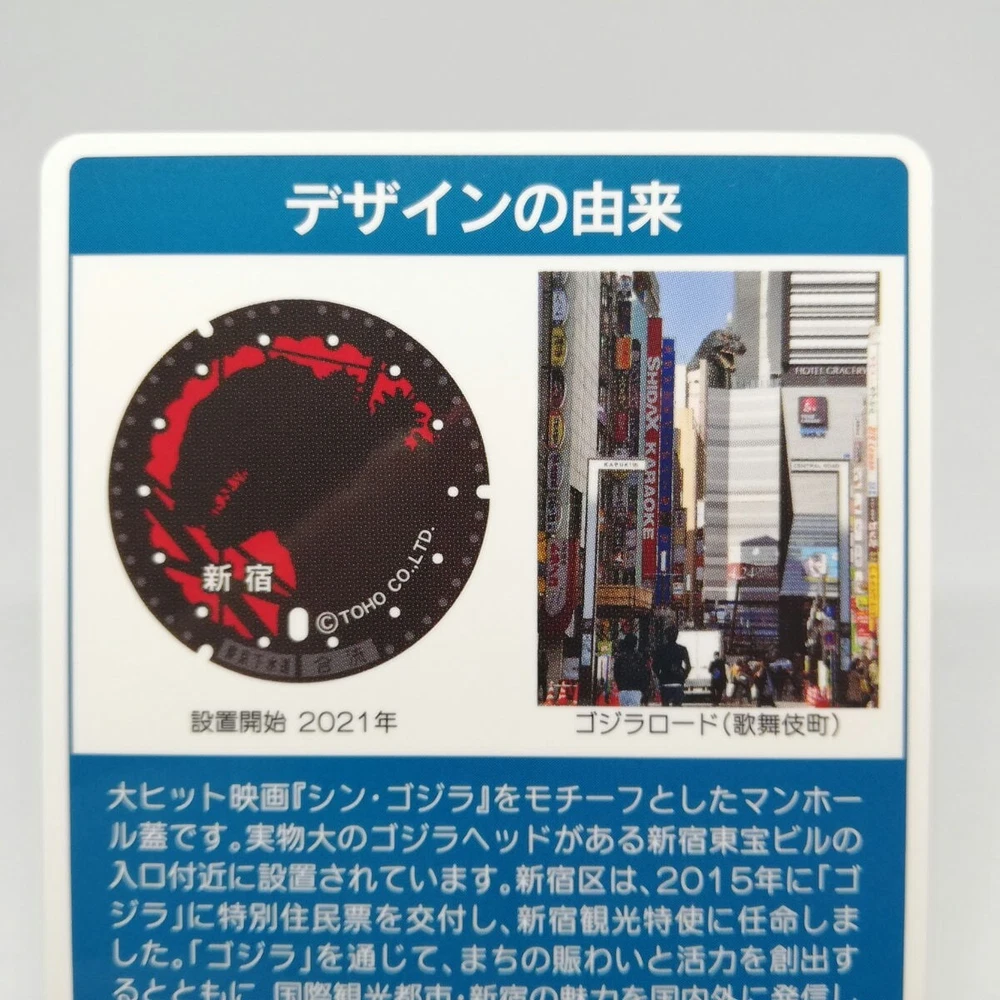 Godzilla Manhole Card Shinjuku Tokyo Location 35.6949N 139.7020E