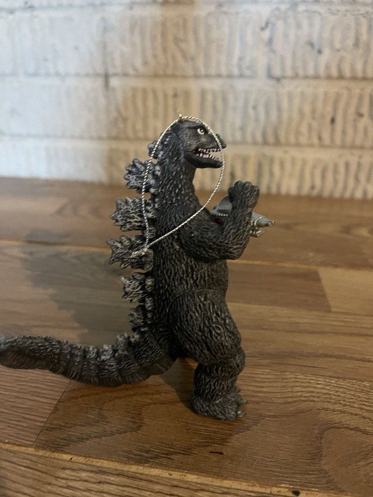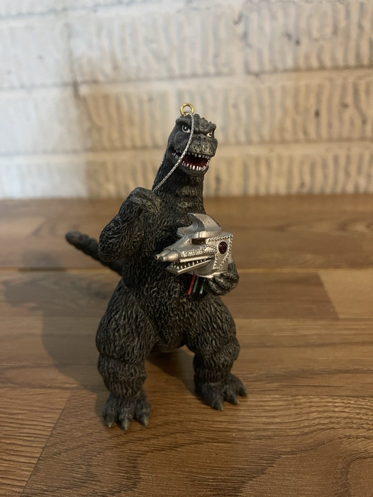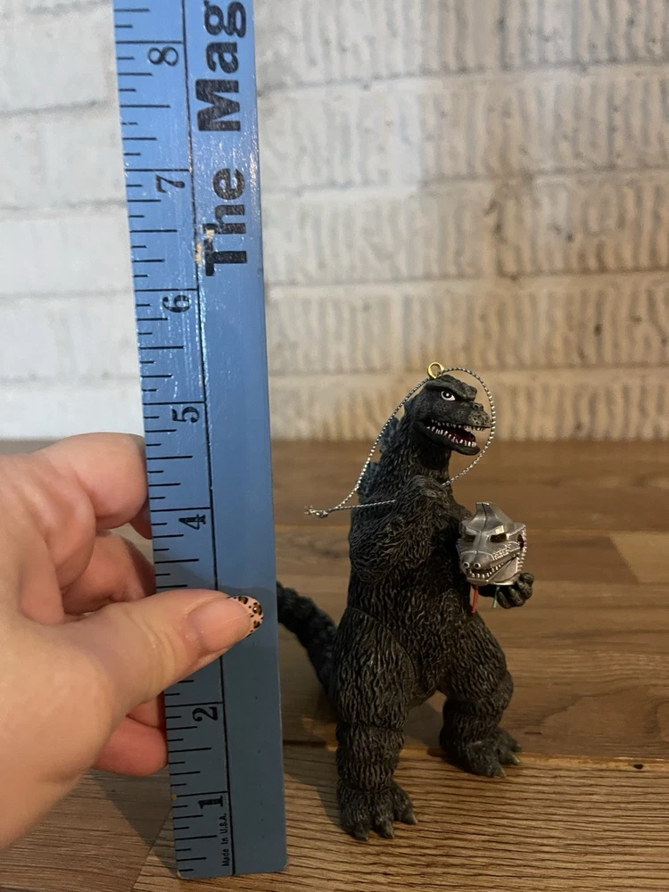 The Godzilla Mechagodzilla 2008 Carlton Cards Heirloom Ornament Collection is a small, green plastic ornament featuring the character Godzilla from the Godzilla franchise. This original ornament, manufactured in 2008 in China, is part of the Carlton Cards collection and is themed around Godzilla. It is designed in the shape of Godzilla and is a perfect addition to any Christmas tree or collectibles display, especially for fans of the iconic monster.