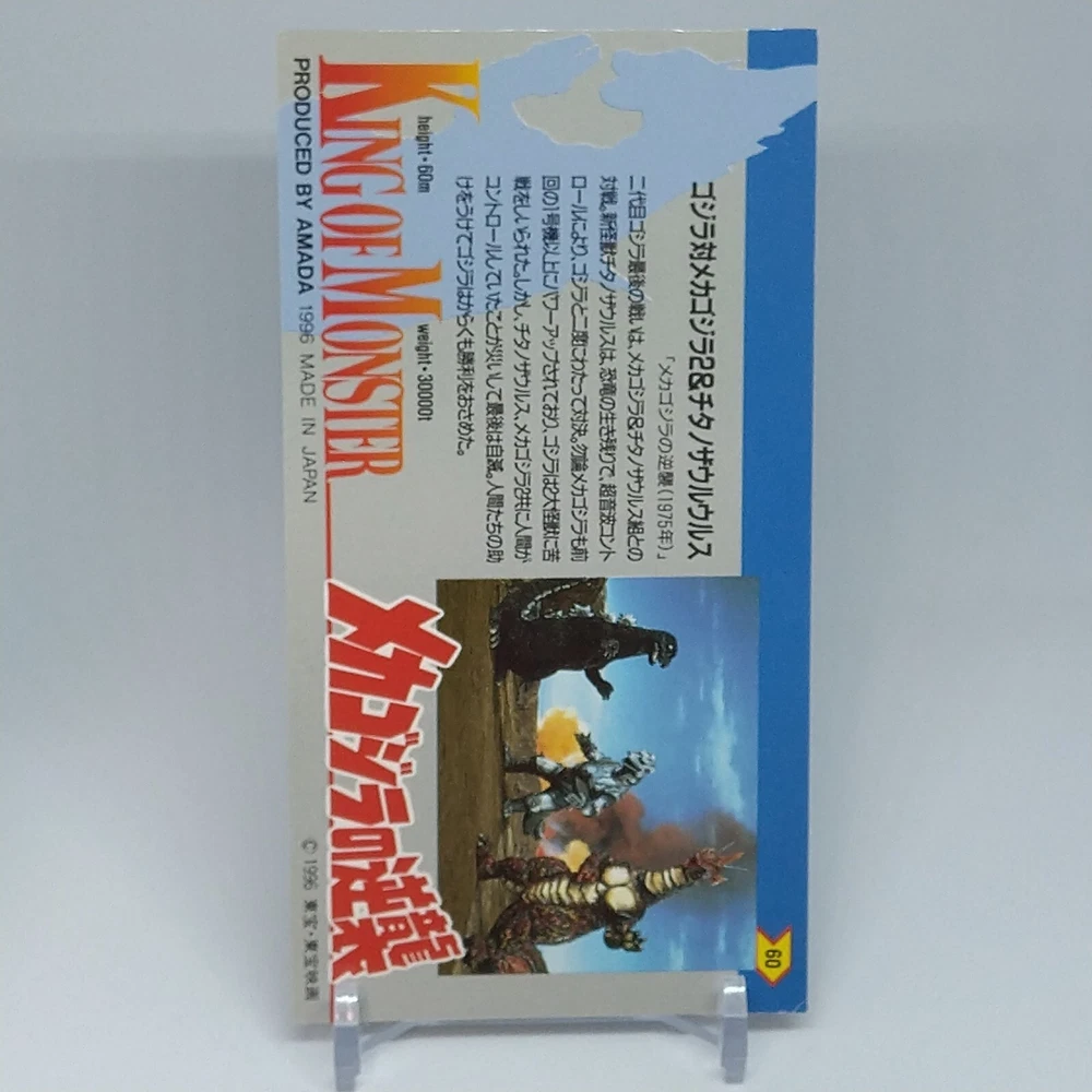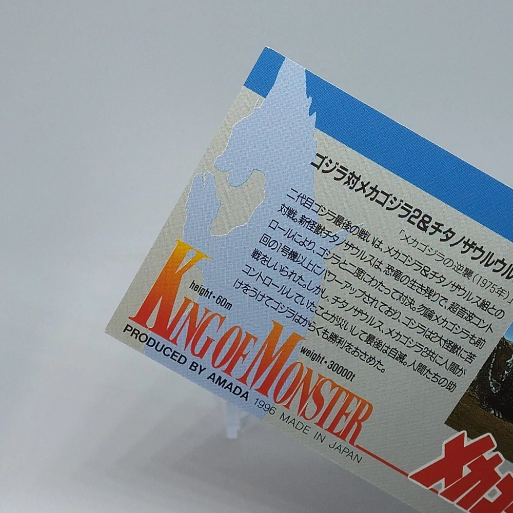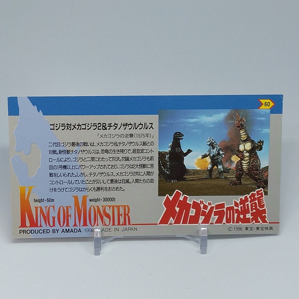 Godzilla Mechagodzilla King of Monster Amada Wide Collection Card No.60 1996 Description Please see the picture for the details of damages and dirt or ask us before your purchase. 100% Authentic or Money Back Guaranteed. (Do not worry you are protected by eBay and eBay Managed Payments) See the pictures for more details. If you have any question about the condition, accessories, or anything about the product, please feel free to message us. We are glad to answer all your concerns. Payment Same as ebay payment method. Shipping Economy shipping: Delivery time will be about 11 - 23 days. Standard shipping: Delivery time will be about 5 - 10 days. Expedited shipping: Delivery time will be about 1 - 4 days. Terms of Sale Money back guarantee within 30 days if returned by customer. We would not be able to accept your bid if you; 1) Don't have a PayPal account. 2) Have unpaid items reported. 3) Have a primary shipping address in countries you don't ship to. 4) Have reportedly violated eBay policies. 5) Have a Feedback score lower than the number you specify. International Buyers - Please Note: Import duties, taxes and charges are not included in the item price or shipping charges. These charges are the buyer's responsibility. Please check with your country's customs office to determine what these additional costs will be prior to bidding/buying. These charges are normally collected by the delivering freight (shipping) company or when you pick the item up - do not confuse them for additional shipping charges.