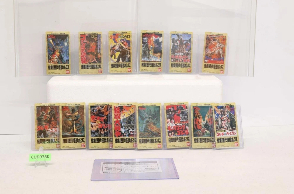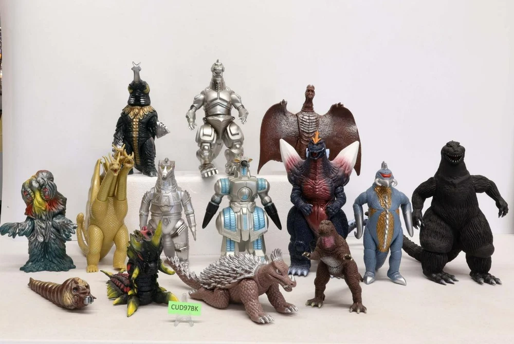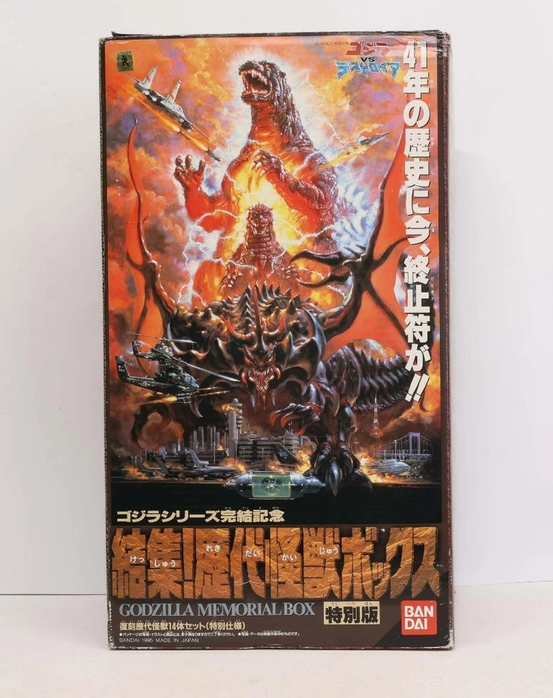 Selling your toy collection? Message us. Box Condition: Box has some wear. It has all the inner and outer flaps. The pictures will show the box's condition. Item Condition: Each figure is rated an average of 88 with light wear. Some may need cleaning. It is not broken. Our grading scale is 1 - 100, with mint flawless items a 100, near mint items a 95, excellent items a 90, and so on. Comes as shown. Accessory Condition: 100% complete. Joint Condition: Tight. Paperwork: Includes all paperwork shown. Godzilla Memorial Box 1995 Bandai Complete Set of 14 Action Figures W/Cards Godzilla Memorial Box 1995 Bandai Complete Set of 14 Action Figures W/Cards Click images to enlarge Description Selling your toy collection? Message us. Box Condition: Box has some wear. It has all the inner and outer flaps. The pictures will show the box's condition. Item Condition: Each figure is rated an average of 88 with light wear. Some may need cleaning. It is not broken. Our grading scale is 1 - 100, with mint flawless items a 100, near mint items a 95, excellent items a 90, and so on. Comes as shown. Accessory Condition: 100% complete. Joint Condition: Tight. Paperwork: Includes all paperwork shown. Pictures sell! Auctiva offers Free Image Hosting and Editing. 300+ Listing Templates! Auctiva gets you noticed! The complete eBay Selling Solution. Track Page Views With Auctiva's Counter