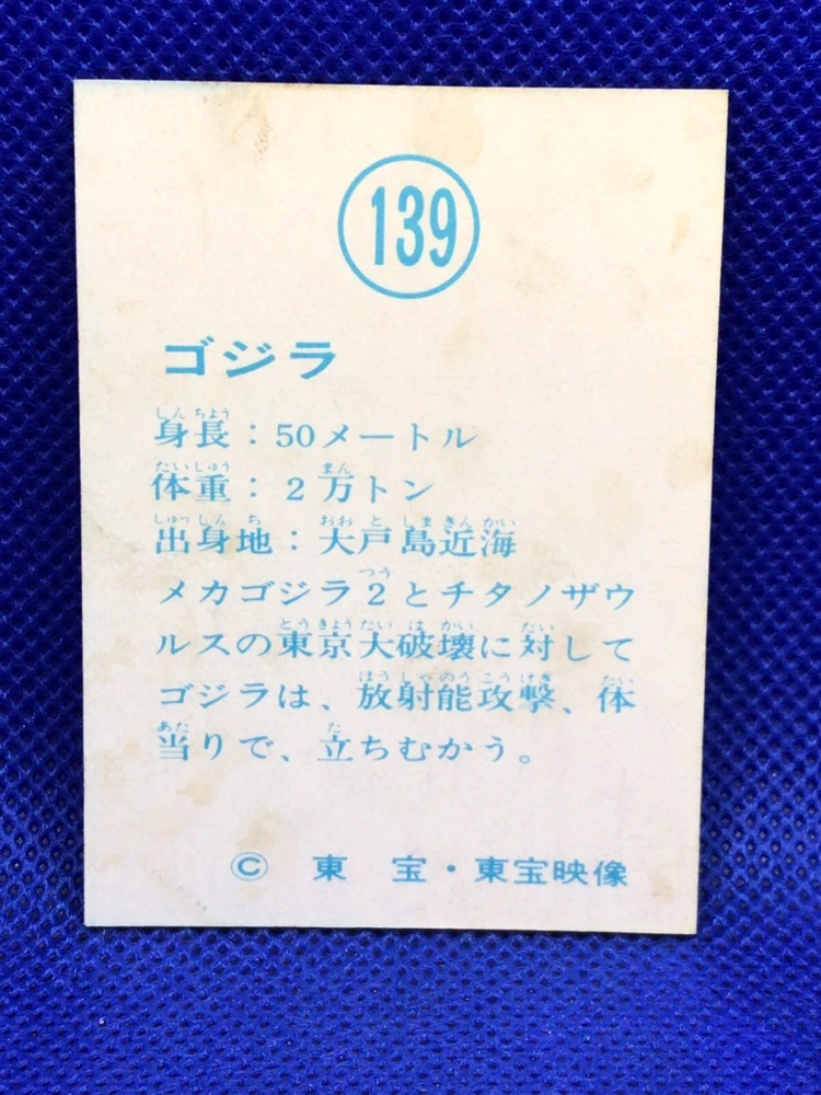 Vintage 1970s Godzilla Mini Menko Card No.139 TOHO Rare 2.5 Inch