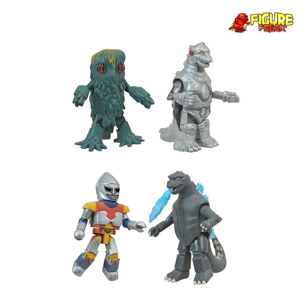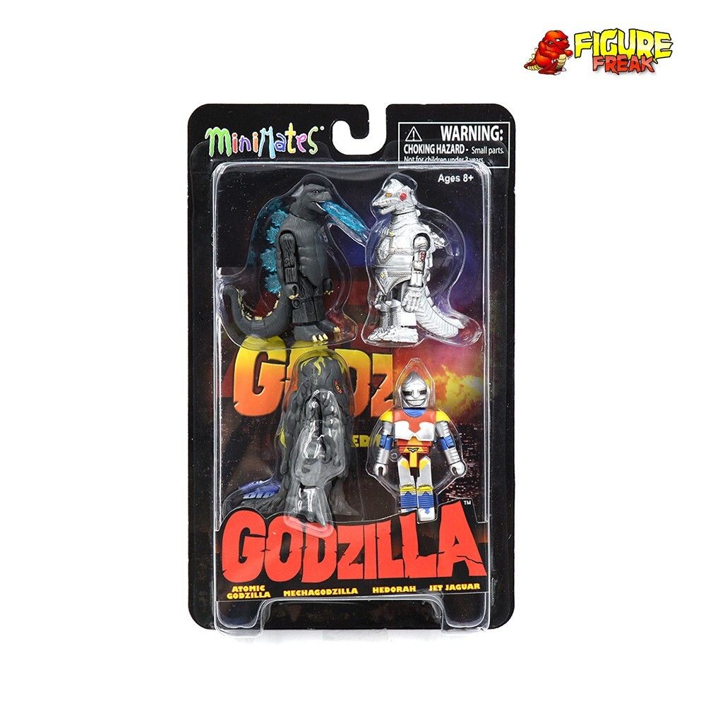 Godzilla Minimates Series 2 Box Set Atomic Godzilla, Mechagodzilla, Hedorah & Jet Jaguar Item Description A Godzilla Minimates Direct Market Release... minty fresh sealed Godzilla Series 2 Box Set. A Diamond Select Toys Release! The Classic Godzilla Minimates line continues, with new 2-inch mini-figures of Godzilla and his greatest foes! Series 2 includes tiny versions of Atomic Godzilla, Mechagodzilla, Jet Jaguar and Hedorah the Smog Monster, each featuring a variety of interchangeable parts. Mix and match to create your own kaiju hybrids! Comes packed on a full-color blister card. Designed by Art Asylum! Be assured that all items we carry are in new, unopened boxes, and are collector-grade. Most Minimates come to you directly out of the case. We do not sell new items that have crushed blisters, dented corners, or nasty creases. All items are packed safely in styrofoam or tissue paper, and shipped in brand new cardboard boxes. Minimates Menagerie at Figure Freak Figure Freak has the worlds best Minimates selection! We buy factory cases direct from the manufacturer and our Minimates Menagerie label has been the leading Minimates storefront on earth since 2007. We try our best to offer nearly every Minimate ever produced. With thousands of characters to choose from, our selection cannot be beat! Check back regularly to find the coolest 2-inch Minimates versions of your favorite and beloved characters from over 100 different licenses such as Marvel, Disney, Aliens, Predator, Lord of the Rings, DC, Ghostbusters, Muppets, Nightmare Before Christmas, Beetlejuice, SpongeBob Squarepants, Walking Dead, Teenage Mutant Ninja Turtles, Star Trek, Battlestar Galactica, Terminator and many more!!! Find the perfect figure for your desktop or dashboard! FREE Domestic (US) Shipping on ALL Minimates Box Sets and 2-Packs !!! Domestic Shipping is always FREE for all US Minimates customers !!! Your Minimates Box Sets and 2-Packs will be shipped in crisp new cardboard boxes with styrofoam peanuts and/or air bags to protect them during shipping. International Shipping We use boxed USPS First Class Mail for all International orders. We ship to ANY country. Your Minimates Box Sets and 2-Packs will be shipped in crisp new cardboard boxes with styrofoam peanuts and/or air bags to protect them during shipping. We do NOT charge handling fees... you pay the exact USPS Retail Shipping Rate for your order, based upon the weight of your items. Please request an invoice when you are done shopping, so we can weigh your order and send you an invoice with an accurate shipping total .
