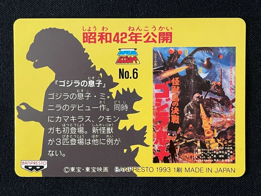 Rare 1993 Banpresto Godzilla Minya Card TOHO Movie Japan 2.32x3.38