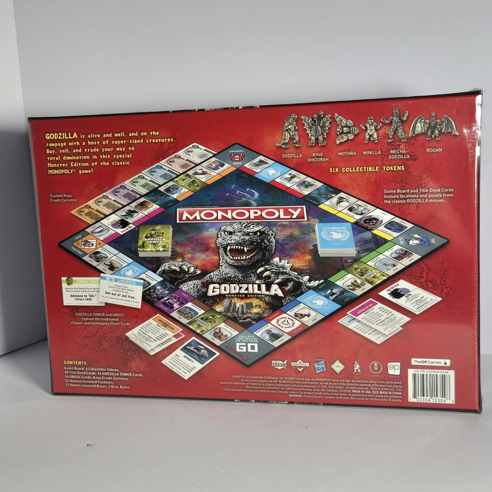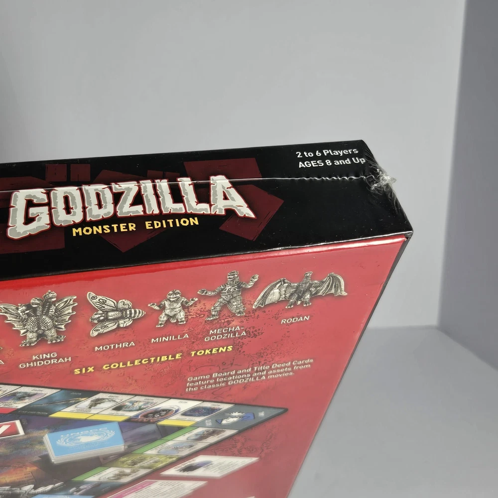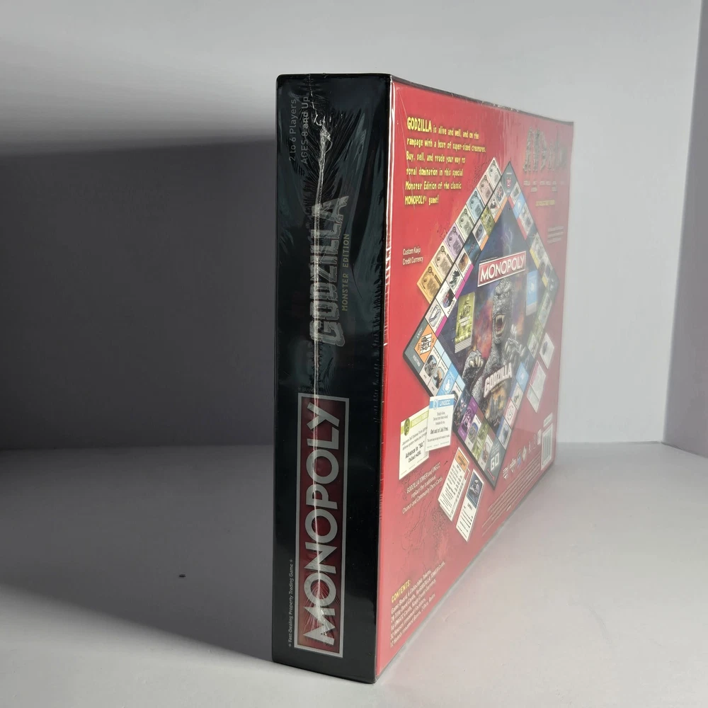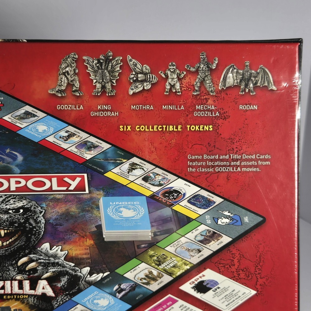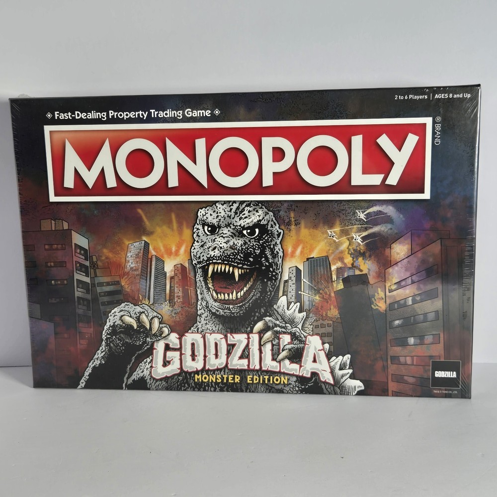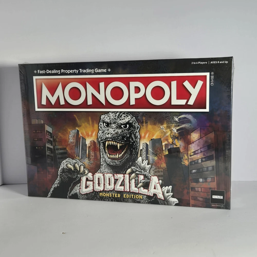 Immerse yourself in the destruction and mayhem of USAopoly's Monopoly Godzilla Monster Edition Board Game! This brand new, sealed board game is perfect for 2 or more players, and features the iconic monster in all its glory. With official licensing from the Godzilla franchise, this game is sure to please fans of all ages, from 8 to adult. The game board is beautifully designed and crafted, with high-quality components that make for a durable and long-lasting gaming experience. So gather your friends and family, and get ready to battle it out in this thrilling Monopoly edition!