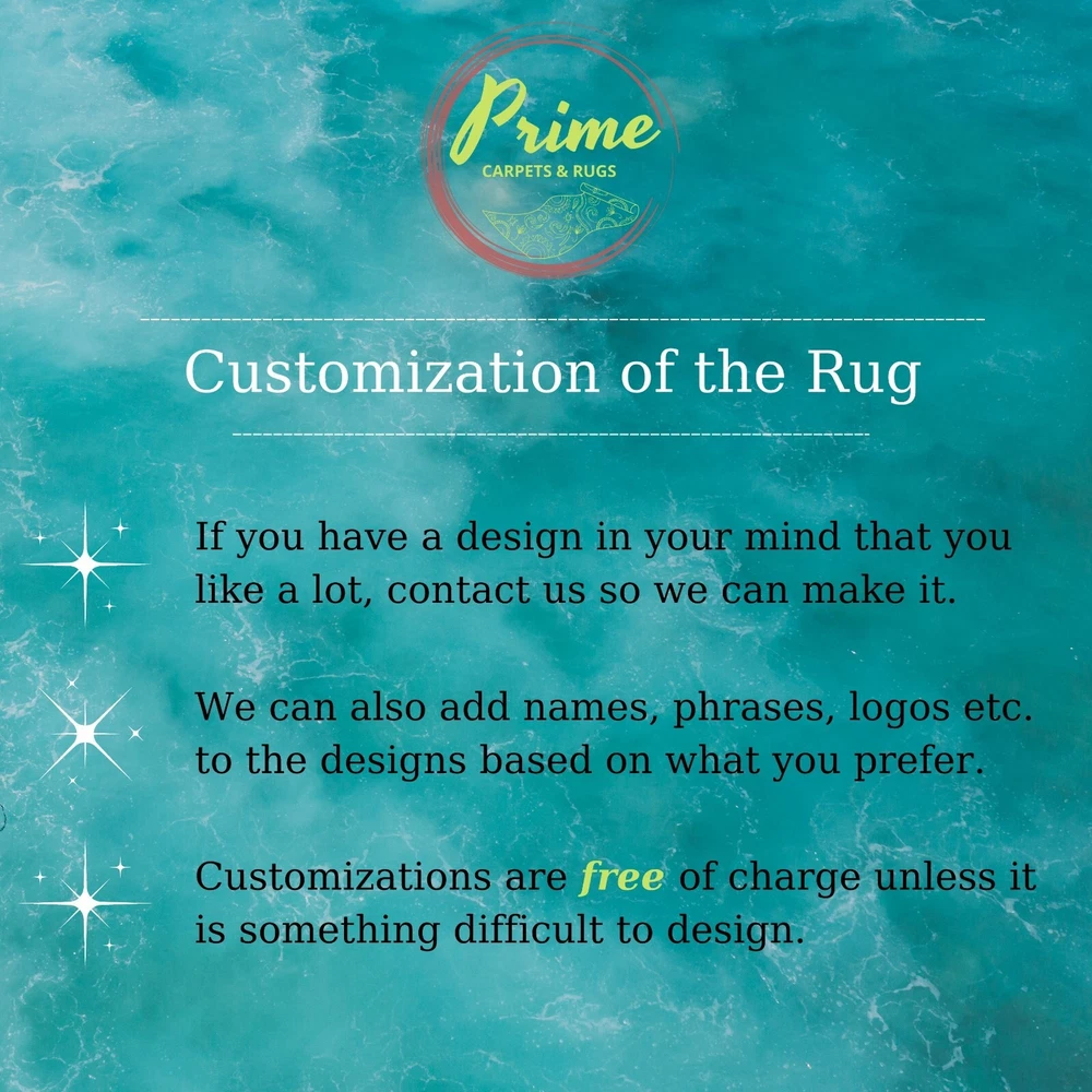 FEATURES ✔ The color of these carpets won't fade for a long time. ✔ Our Carpets consist of non-Slip Cotton Base and, Soft Shiny Microfiber Polyester fabric on the top. ✔ Our products are produced with digital printing technology. ✔ Don't wash the rug with strong chemicals and do not dry clean it. You can wash it at 30 degrees in delicate washing programs. ✔ Carpet thickness is 5 mm(0.2 inches). ✔ Rug bindings can be white or black depending on your preferences. ✔ Carpet's width or length might be ± 3% different from what you have ordered. CUSTOMIZATION To order a customized product, please send us the details about the design and dimensions. PACKAGING and SHIPMENT ✔ We send your orders by DHL, FedEx, Ups Firms by EXPRESS, ✔ It will reach any location in Europe, from 2 to 5 days. ✔ It will reach any location in the US/Canada, from 3 to 8 days. ✉ For your questions, please contact us. x429