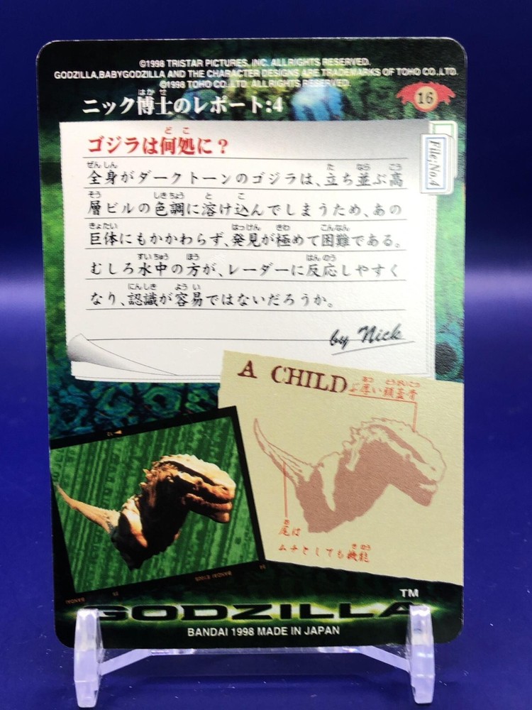 1998 Godzilla Movie Bandai Japanese 16 Card Set