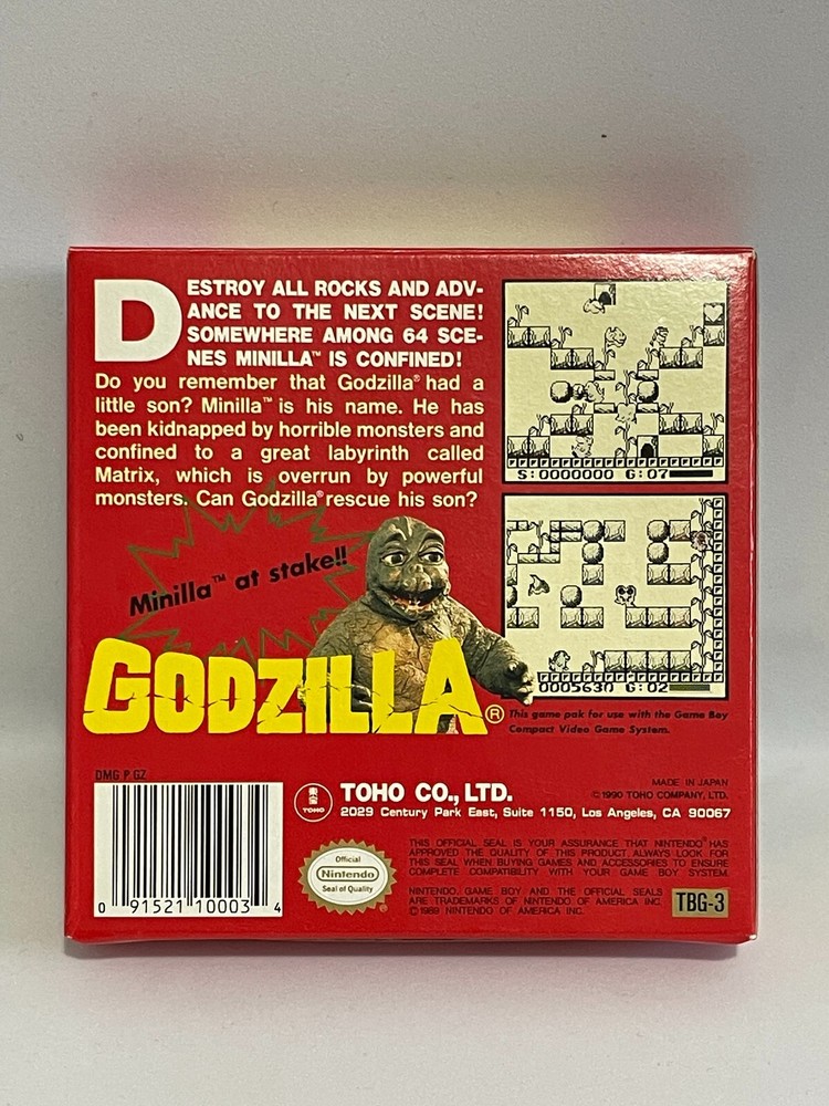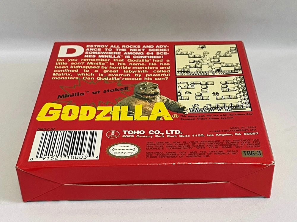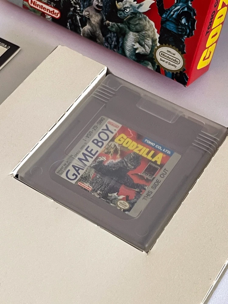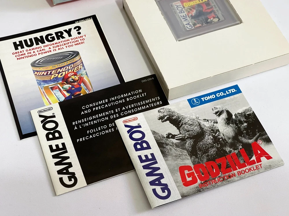 For Sale: 1990 Godzilla Nintendo Gameboy Mint Condition - Sharp corners, looks brand new Includes manuals, booklets, and game Refer to photos for condition - you will receive everything as pictured Will be packed carefully and securely All postage (worldwide) includes tracking Any questions, please feel free to contact me. Buy from a Trusted & Reliable eBay seller. - - - - Terms of Sale Payment required within 24 hours upon purchase I reserve the right to cancel your order/auction if its not paid for within 24 hours No returns or refunds - sold as is. By purchasing this item, you agree to these terms. Any questions, just ask first.