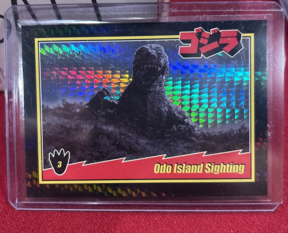 The product is a rare Godzilla trading card from the Series 1 collection, manufactured by TOHO Co. in 2024. This particular card features a green parallel variety and is part of the franchise's official release. Being a Black Prizm card with a limited print run of 9 out of 54, it holds value for collectors who are fans of the Godzilla series and non-sport trading cards. The card is not autographed, making it a sought-after addition to any trading card collection focused on the iconic monster.
