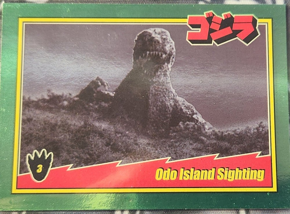 Unleash the thrill of the King of Monsters with the "Godzilla - Odo Island Sighting - #3 - Series 1 - 2024" trading card. This captivating non-sport card, produced by TOHO Co., captures the essence of the legendary creature in vibrant green parallel/variety, adding a unique twist to your collection. As part of an exhilarating series that celebrates the rich history of the Godzilla franchise, this card encapsulates the iconic character in a stunning design. Manufactured in 2024, it's a must-have for fans and collectors alike who wish to commemorate the enduring legacy of one of the most beloved monsters in cinematic history.