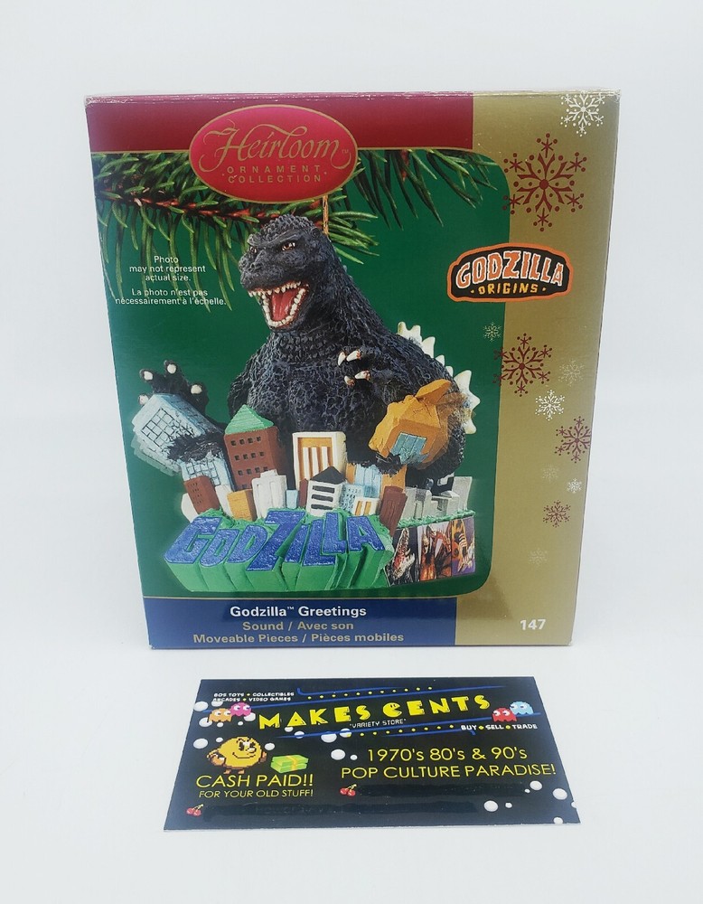 This listing is for - Godzilla Origins Greetings Carlton Heirloom Christmas Ornament Sound #147. In good condition overall. YES WE COMBINE SHIPPING! - BUY MORE SAVE MORE! You will receive the exact item as shown. Any questions please ask before bidding. Please look over all photo/photos for condition before bidding. All items are sold AS-IS. If you should encounter a defective or damaged item please reach out to us so we can assist you! Items ship in as fast as 1 business day. WE DO offer combined shipping on our listings. WE DO NOT offer partial refunds for any reason. See our Ebay Store for more awesome retro goods!!