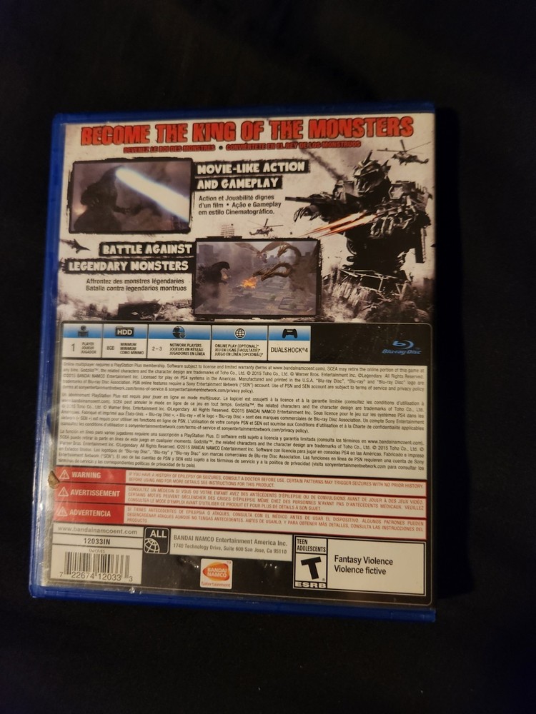 Embark on a colossal adventure with the Godzzilla PS4 game, where you'll unleash the king of monsters in a destructively delightful sandbox action-adventure experience. Immerse yourself in a world where you'll battle fierce opponents and demonstrate your mastery over land, sea, and air as you progress through the gripping storyline. This 2015 release, rated T for Teen, comes from reputable publisher Bandai and features the original manual, ensuring you have all the guidance you need to conquer your foes. The game is designed for the Sony PlayStation 4 and is fully compatible with NTSC-U/C region systems. Enjoy a seamless gaming experience with this well-crafted title that's sure to satisfy fans of the genre. will consider offers