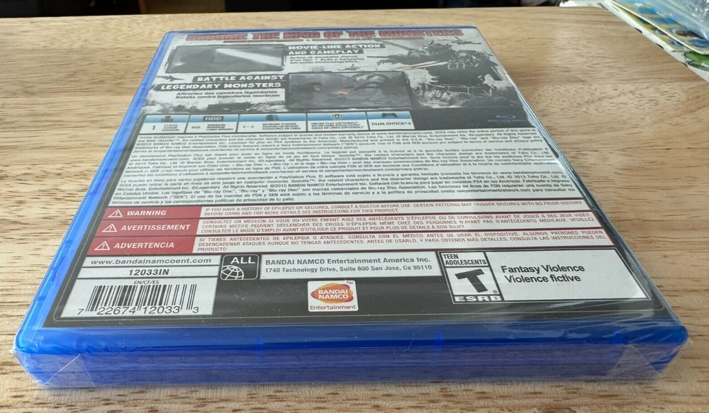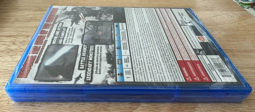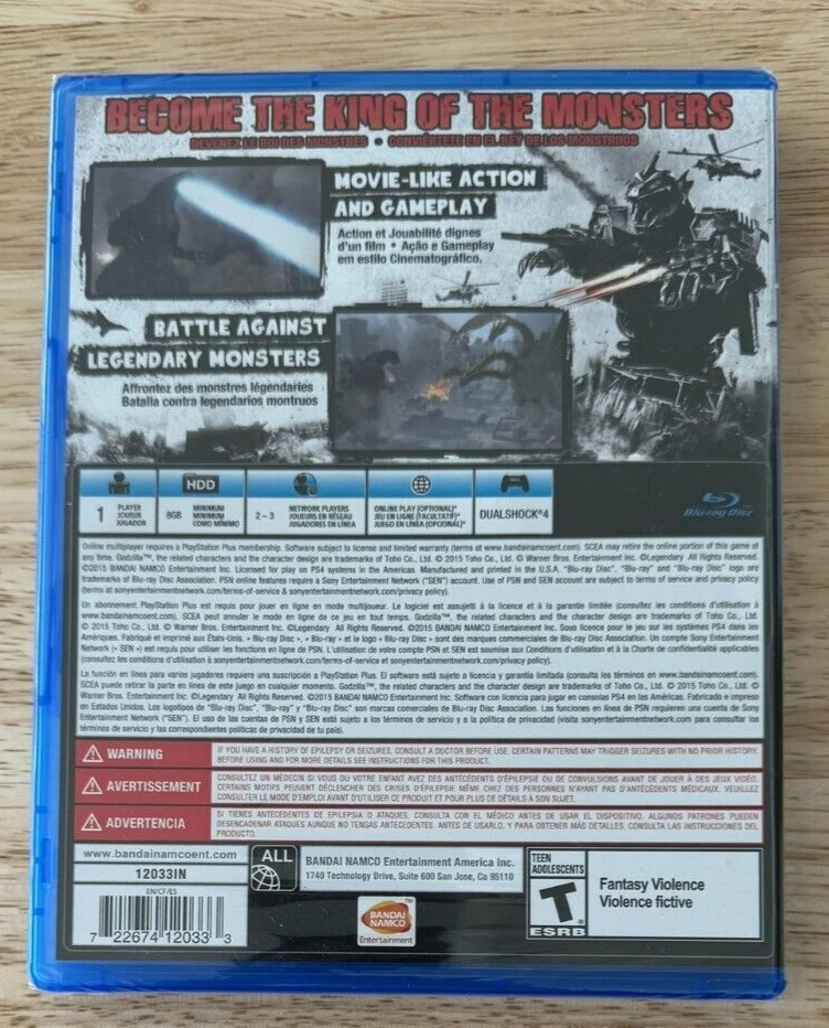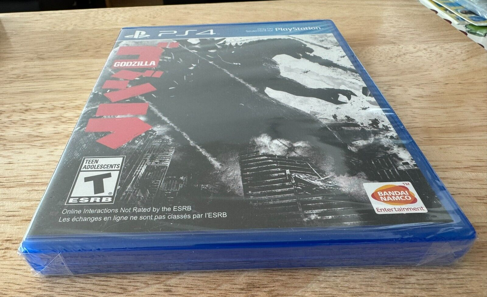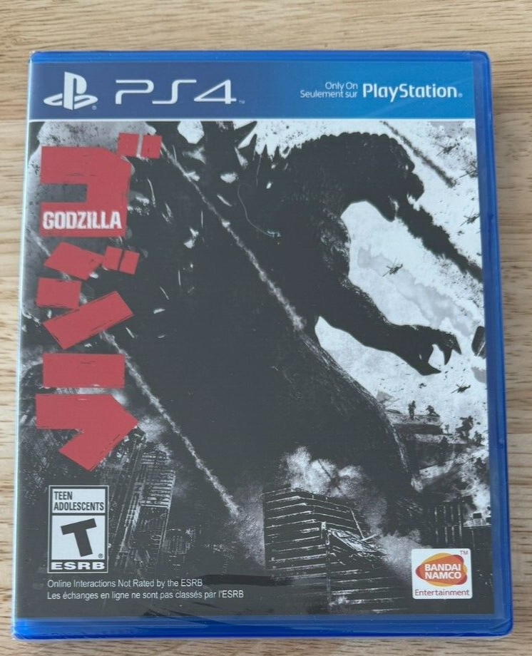 Godzilla PS4 Game This is a listing for a new and still sealed copy of Godzilla for the PlayStation 4 system. It's still factory sealed with the Y-fold seal. It's clean and in great condition. This game is extremely clean and the seal is 100% intact and tight. In doing a close inspection (upon request from someone) I did notice a couple of small things on the package. I've uploaded the additional pictures to show. There's a small scratch on the plastic wrap on the back It's about a cm long and I had to shine a light directly on it in order to see it. It wasn't really visible normally. I could feel it slightly by running my finger over the exact spot. The seal is not ripped in that spot, it's just a surface scratch. On the front there's a spot that is bumped up on the actual case itself. I show a closeup image of it in one of the pics. This I could definitely feel with my finger and there's no real mark on the actual plastic, but it seems to be a spot where the clear plastic on the actual Blu-Ray case is bunched up. It doesn't seem to affect the coversleeve but it was something that I felt should be noted. This is the North American ESRB version of the game and is a pretty rare title to get factory sealed. Check the pics to see pictures, this is the actual item that you'll be receiving. Any buyers with zero or negative feedback may be cancelled by my discretion. Check out my listings for other video game, collectibles and entertainment items.