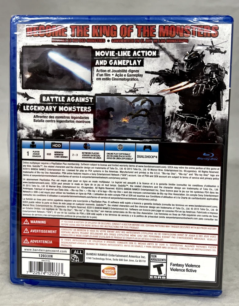CONTENTS Godzilla PlayStation 4, 2015 Brand New Y- Factory Sealed - Some Tears RARE Brand New Factory Y-Sealed. Has 2 rips/tears on 2 different corners. Look at photos for further details. System: Sony PlayStation 4 Region: NTSC-US This item is 100% OFFICIAL and AUTHENTIC . NOT a reproduction or fake. Condition: Brand New, Sealed. For sale is the exact item pictured. SHIPPING Shipping cost include packaging, handling, material and shipping cost. We will only be shipping to addresses provided on eBay and verified with PayPal. Items are shipped within 1-3 business day after receiving payment excluding weekends. The estimated times may take longer during holidays. We can combine shipping, please send us a message about combined shipping cost. Regular Letter-post (TCG Singles only, NO Insurance, NO Tracking) *Please note that we are not responsible for lost or damaged orders when choosing an uninsured delivery method. CUSTOMS A&C Games will declare the sold value of the merchandise as required on customs form as per eBay, policy, legal requirements and for insurance purposes. Import duties, taxes and charges are not included in the item price or shipping charges. These charges are the buyer's responsibility. Please check with your country's customs office to determine what these additional costs will be prior to bidding. RETURN POLICY Return requests must be opened within 7 Days after the receipt of the item. Returns are only accepted if an item is damaged or the wrong item was sent to you, We will refund or replace it at no charge. Buyer is responsible for all return shipping costs. If you have a problem with any of the items you purchased from us or if you any questions or concerns, please contact us before leaving any type of feedback, we will get in touch with you as soon as possible to do our best in resolving your situation. Please return the item in original packaging and condition as received. We do not accept any returns on any brand new items that have been opened after purchase. We do not accept any returns on any items that have been listed as "AS-IS" Please note that technical issues on the user's end are not valid reasons to return an item, and these cases will be charged restocking fees. If an item is returned and passes testing, it will not be accepted as defective. PAYMENT We accept Paypal only. Canadian buyers will be charged 5% sales tax, Ontario buyers will be charged 13% HST. Payment must be completed within 3 days of purchase, unless we have been contacted beforehand. Unpaid ebay cases will be opened after that, and items will be relisted. BEST OFFER We accept best offers that are close to the listed value and will not accept best offers greatly lower. Please contact us if you have any questions, concerns, or requests. FEEDBACK If you have any concerns, please contact us before leaving feedback and we will do our best to resolve any issues. If you are satisfied, please leave us good feedback. It would be very much appreciated. Thank you very much for your business.
