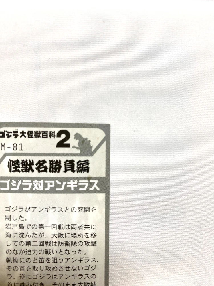 You can get a discount if you buy the products in bulk Please select multiple items you would like to purchase and send us a message. I would be happy if I could make a good deal with you. Send us the URL of the product you want. If you don't know, send us the product number. "a-ri-ga-to-u" I live in Tokyo, Japan. I sell Japanese original goods and character goods. Please feel free to say "Hi" if you find the item that you want. Description [Title] Godzilla Raids again Japanese Monster Encyclopedia 2 Card SFX TCG M-01 [Condition] Used."" Please judge with photos."" Shipping Economy Shipping [ No Tracking number , Japan Post Airmail] : Cost Free, About 2-3 weeks to arrive --Shipping-- Shipping from Japan Ship to Worldwide Airmail (No insurance & No tracking number, about 7-14 days to USA.) tracking number +4$ (Insurance & Tacking number, about 7-14 days to USA.) EMS +30$ (insurance &tracking number 3-7 days to USA.) International Buyers - Please Note: Import duties, taxes and charges are not included in the item price or shipping charges. These charges are the buyer's responsibility. Please check with your country's customs office to determine what these additional costs will be prior to bidding/buying. These charges are normally collected by the delivering freight (shipping) company or when you pick the item up - do not confuse them for additional shipping charges. We do not mark merchandise values below value or mark items as gifts - US and International government regulations prohibit such behavior.