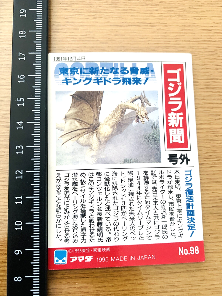 Vintage Godzilla 1995 Retro Card No.98 TOHO Japan C-19 Collectible