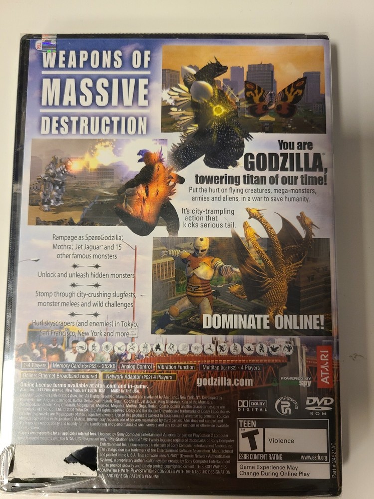 Description Godzilla Save the Earth PS2 New Factory Sealed NIB Complete CIB Damage LOOK UPC was cut out and box was damaged. Game is brand new factory sealed. Includes game, case, and manual. Payment PayPal only. Payment is due 24 hours after auction end. FAST N FREE Shipping Item will ship one business day after payment is made. Item will be shipped USPS First Class shipping. About Us We are your best source of retro gaming and awesomeness! We have been in the gaming business since 1997, striving to have the best prices and great customer service! Let us bring back those childhood memories or create new ones with the power of gaming! We are a local Video Game store in Central Florida and have two great locations, in Winter Park and in Sanford.