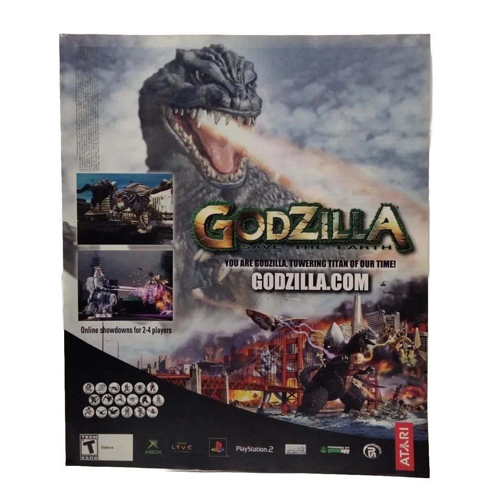 Godzilla Save the Earth, Magazine Print Ad. Official Art Poster. Vintage 2004 Video Game Advertisement for Xbox and PS2 Size: 9" x 10-3/4" In Perfect Condition. No Damage. Shipped super fast same business day with USPS Ground Advantage. Thanks for looking in my eBay store, White Rabbit Dog House!