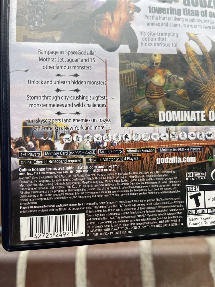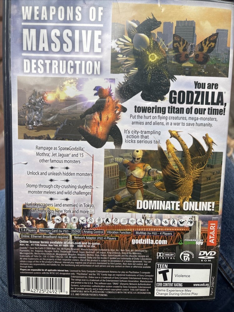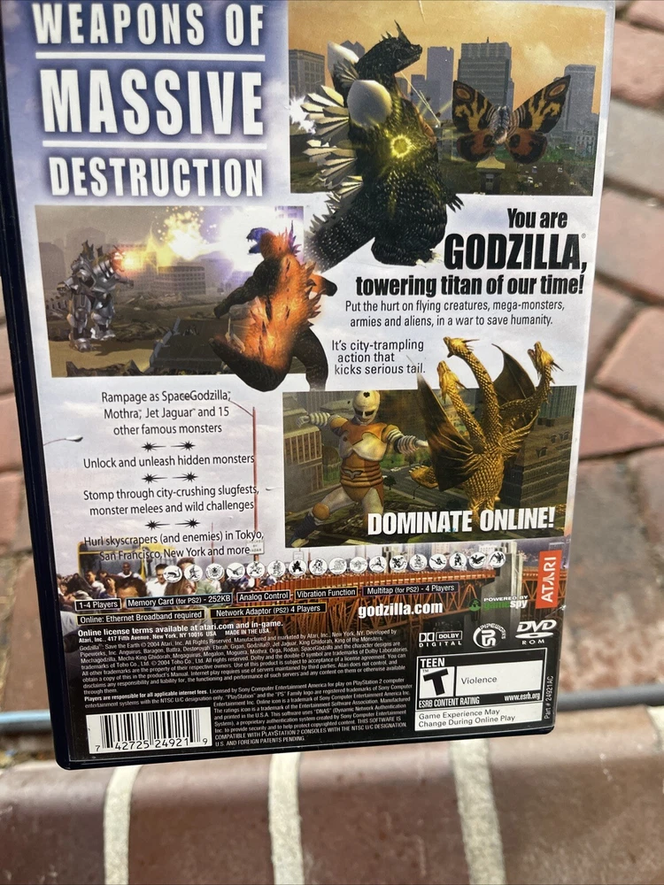 Experience the thrill of action and adventure with Godzilla: Save the Earth for Sony PlayStation 2. This game, released in 2004, features the iconic monster in a T-Teen rated game. The game comes with a manual and case, and is in NTSC-J format for Japan. Manual has some dog-eared pages on corners see photos Explore the world and save it from destruction with this exciting game from Atari Inc. The game is perfect for fans of the Godzilla franchise and action-packed games. Get ready to embark on a thrilling journey with this classic game.