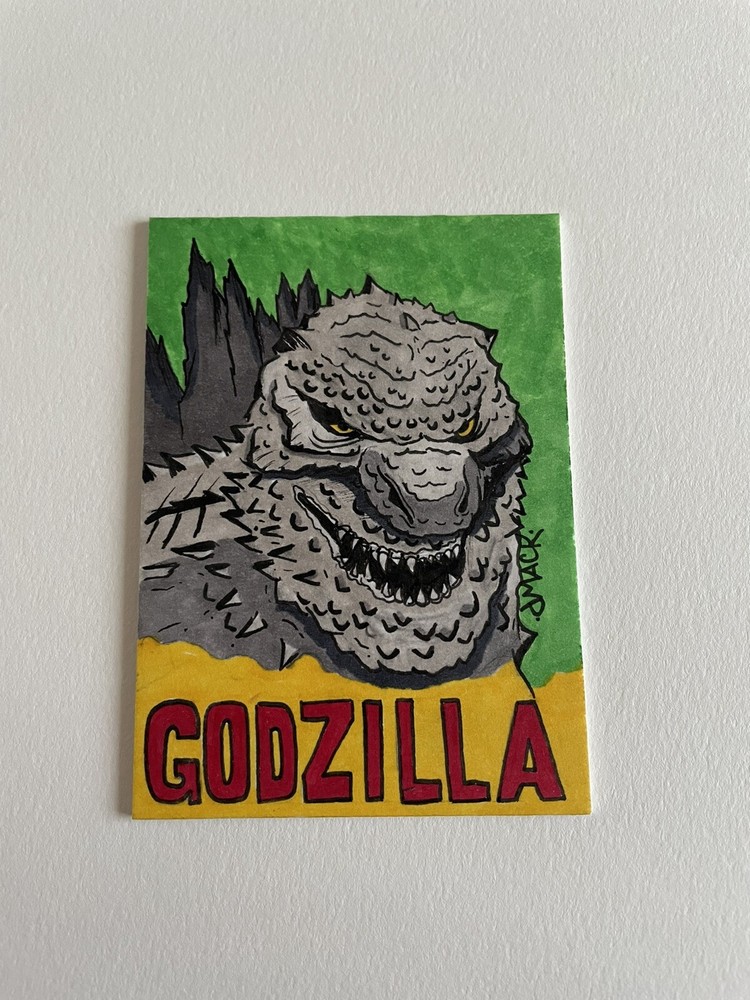 Godzilla Sketch Trading Card - Movie Coming 2021. Condition is "New". 3.5inch x 2.5 inch sketch card Shipped with Canada Post Lettermail.