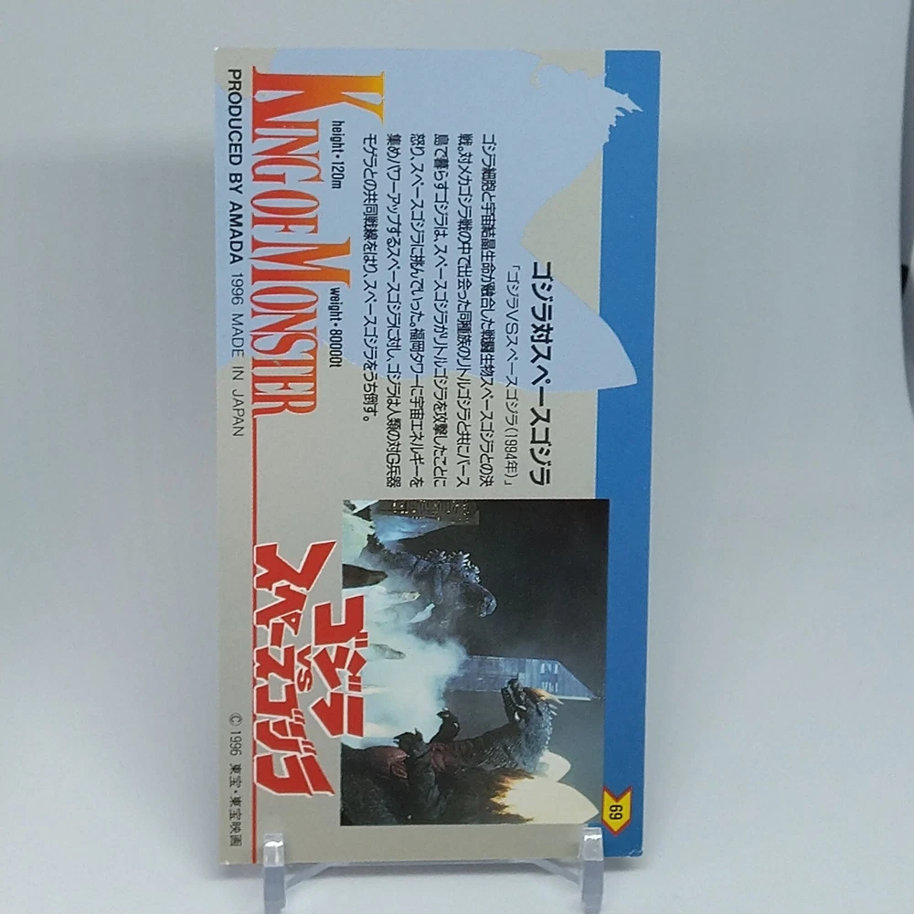 Godzilla Space Godzilla King of Monster Amada Wide Collection Card No.69 1996 Description Please see the picture for the details of damages and dirt or ask us before your purchase. 100% Authentic or Money Back Guaranteed. (Do not worry you are protected by eBay and eBay Managed Payments) See the pictures for more details. If you have any question about the condition, accessories, or anything about the product, please feel free to message us. We are glad to answer all your concerns. Payment Same as ebay payment method. Shipping Economy shipping: Delivery time will be about 11 - 23 days. Standard shipping: Delivery time will be about 5 - 10 days. Expedited shipping: Delivery time will be about 1 - 4 days. Terms of Sale Money back guarantee within 30 days if returned by customer. We would not be able to accept your bid if you; 1) Don't have a PayPal account. 2) Have unpaid items reported. 3) Have a primary shipping address in countries you don't ship to. 4) Have reportedly violated eBay policies. 5) Have a Feedback score lower than the number you specify. International Buyers - Please Note: Import duties, taxes and charges are not included in the item price or shipping charges. These charges are the buyer's responsibility. Please check with your country's customs office to determine what these additional costs will be prior to bidding/buying. These charges are normally collected by the delivering freight (shipping) company or when you pick the item up - do not confuse them for additional shipping charges.