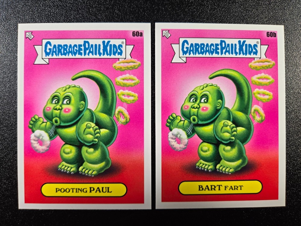 Garbage Pail Kids Pooting Paul & Bart Fart You are purchasing cards in similar NM/MT condition to the cards pictured. Centering can vary. I deliver on all cards sold at low prices even when prices have risen. You are to have the same standards and take receipt of cards that may have dropped since purchased. First cards ships for $1.98. Additional cards purchased in same transaction ship free. All US orders ship with tracking by US Postal Service or Ebay. US bidders. All sales are final. No seller's remorse. No buyer's remorse. Integrity sellers & buyers only. International bidders No seller's remorse. No buyer's remorse. Integrity sellers & buyers only. International bidders the first card ships for $3.98. Additional cards purchased in the same transaction are just 50 cents each. Based on value of cards, and shipping paid, product may be sent with simple postage, through ebay global shipping program, or with US Postal Service 1st class shipping. International bidders if I have had issues sending items to your country I reserve the right to request additional shipping charges or cancel your order. Locations currently requiring additional shipping charges are Hong Kong, China, Thailand, Singapore, Malaysia, Mexico, the Middle East.