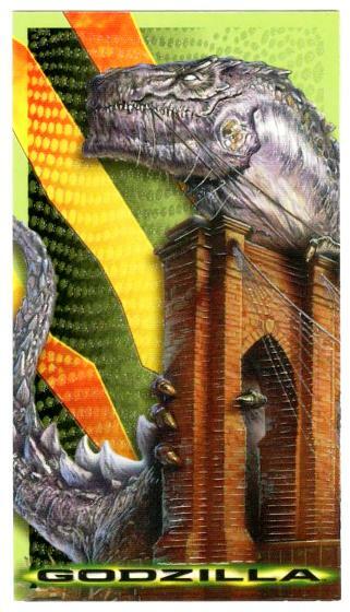 Available from the 1998 Inkworks release of Godzilla: Card GS1. The card(s) are guaranteed to be near mint or better. See the scan. For related sets or individual inserts, please feel free to contact us at GOLDNOVA COLLECTIBLES . Just google us on the web. Our prices and our shipping rates are always reasonable. Shipping: Canada United States International 01 - 05 Cards 1.50 2.00 4.00 06 - 27 Cards 3.00 4.00 7.50 28 - 65 Cards 4.00 7.00 12.50 66-150 Cards 6.50 12.50 24.50 151+ Parcel rates will apply. Typically around $14 or more for N. America. More for international. The above shipping chart applies to cards of standard size and weight. When determining the cost of combined shipping, please keep in mind that combined shipping will be more for oversized cards, thick cards and metal cards. Shipping is typically letter/bubble pack mail. Insurance and/or tracking can be added, but costs significantly more. The seller also reserves the right to insist on insured postage depending on the cost of the purchase and/or the feedback of the buyer. And yes, we do combine shipping on multiple orders . Purchasers of Multiple Items : Please use the Shopping Kart and click on "Request Total". This will provide an opportunity to combine and correct the shipping. Acceptable payment options include PayPal.