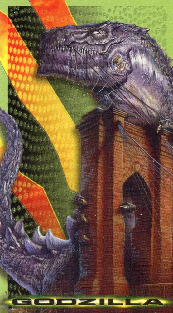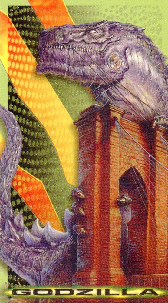 Description: Godzilla The Movie Supervue Widevision Godzilla Skin Embossed Chase Card Contents: 1 single Godzilla Skin Embossed Chase Card (2 1/2" x 4 1/2" Widevision) GS1. Manufacturer: Inkworks, 199...