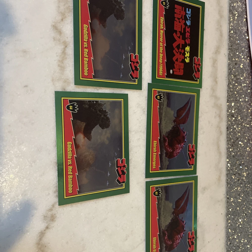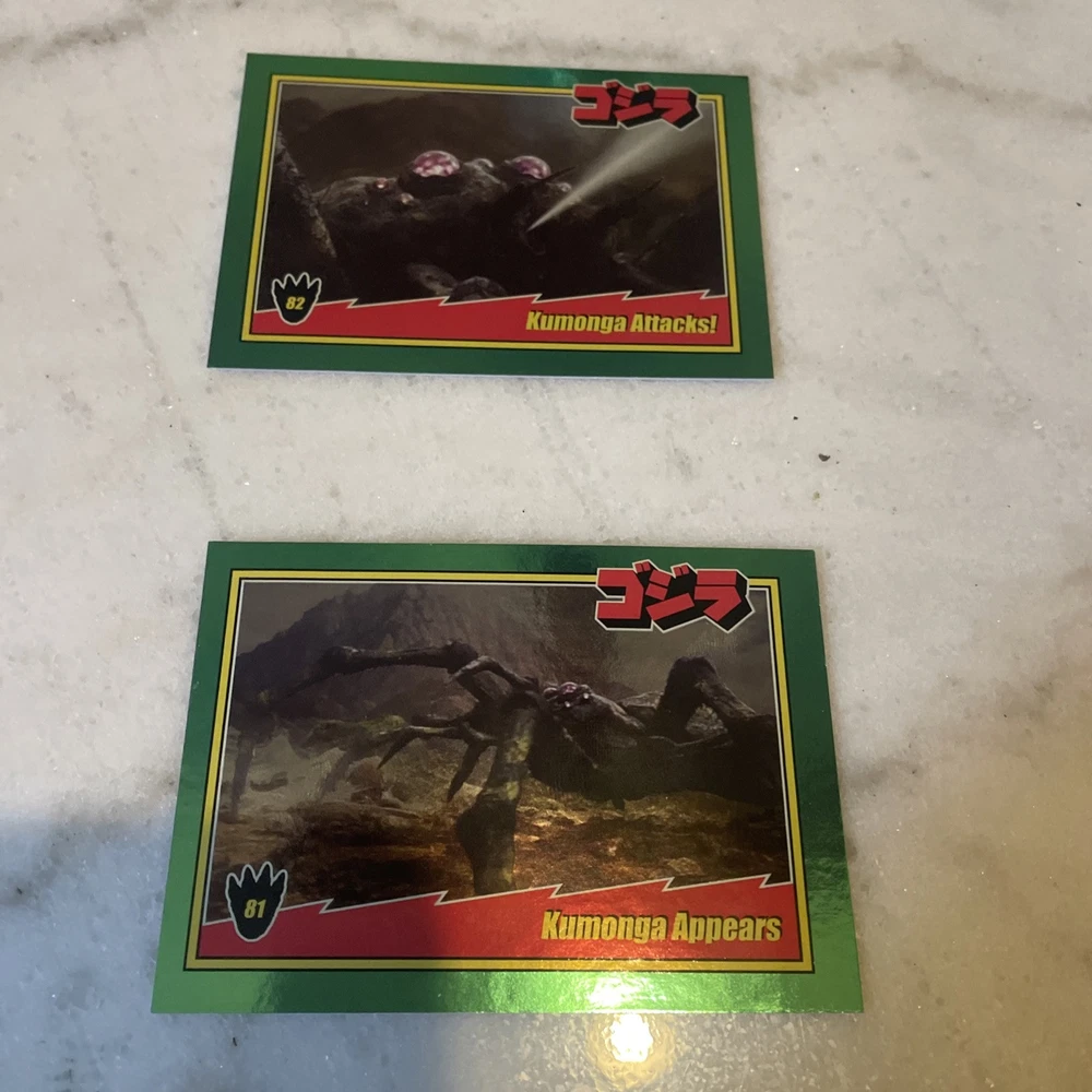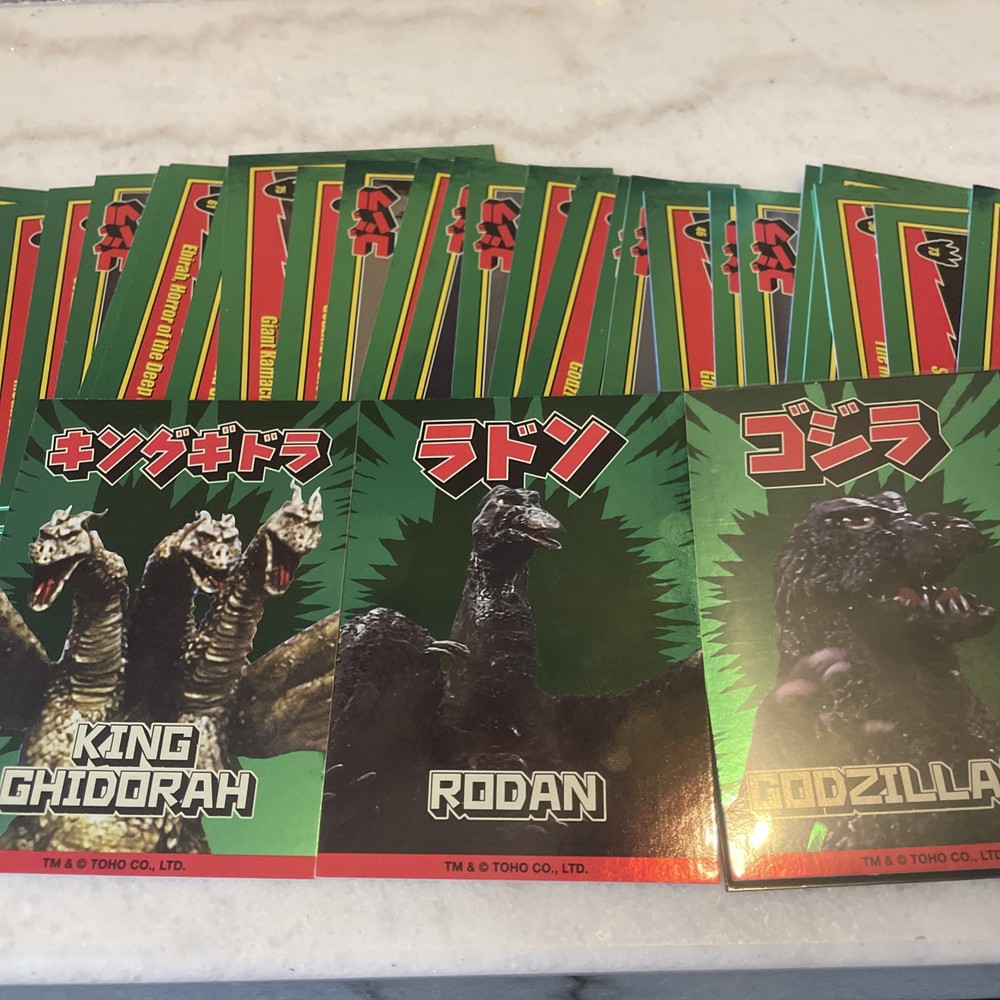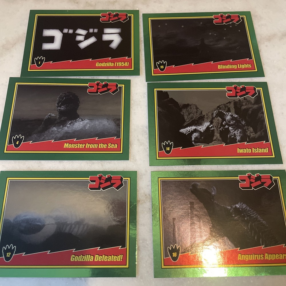 The product is a set of Godzilla Toho Super 7 trading cards where the buyer can choose which cards they would like to purchase. These are non-sport trading cards featuring characters from the Godzilla franchise. Each card likely showcases a different character or scene from the Godzilla series, allowing fans to collect and trade their favorite moments from the movies. Will ship with USPS and eBay standard envelope Top loaded and sleeved