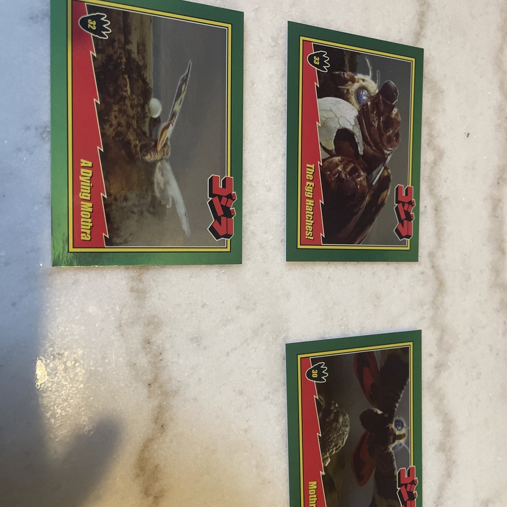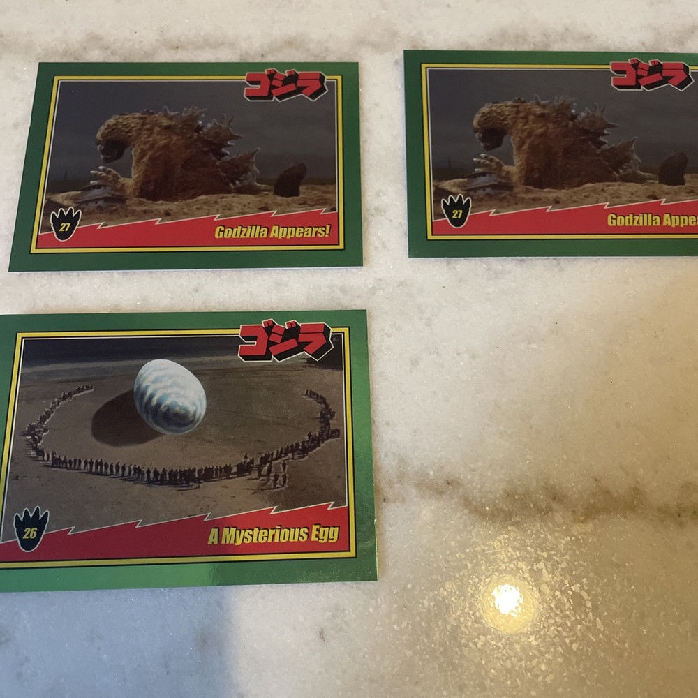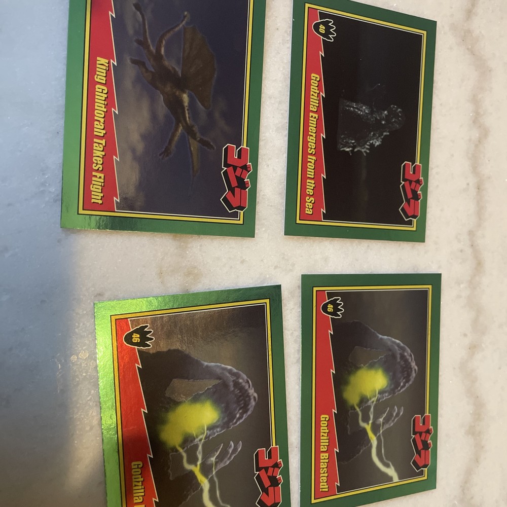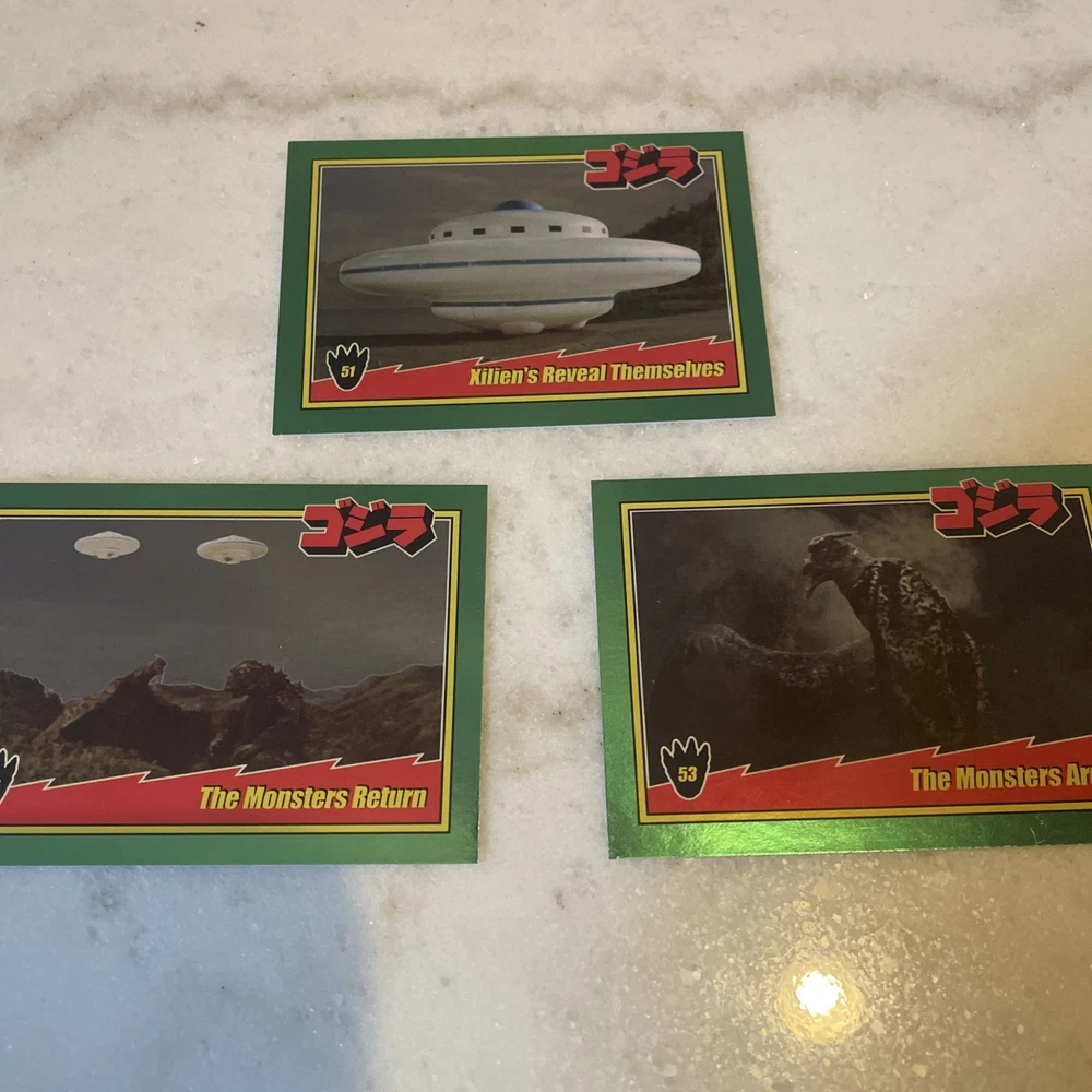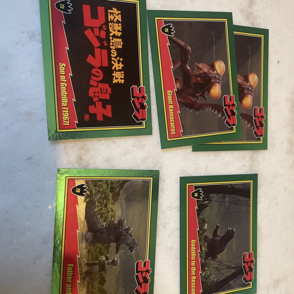The product is a set of Godzilla Toho Super 7 trading cards where the buyer can choose which cards they would like to purchase. These are non-sport trading cards featuring characters from the Godzilla franchise. Each card likely showcases a different character or scene from the Godzilla series, allowing fans to collect and trade their favorite moments from the movies. Will ship with USPS and eBay standard envelope Top loaded and sleeved