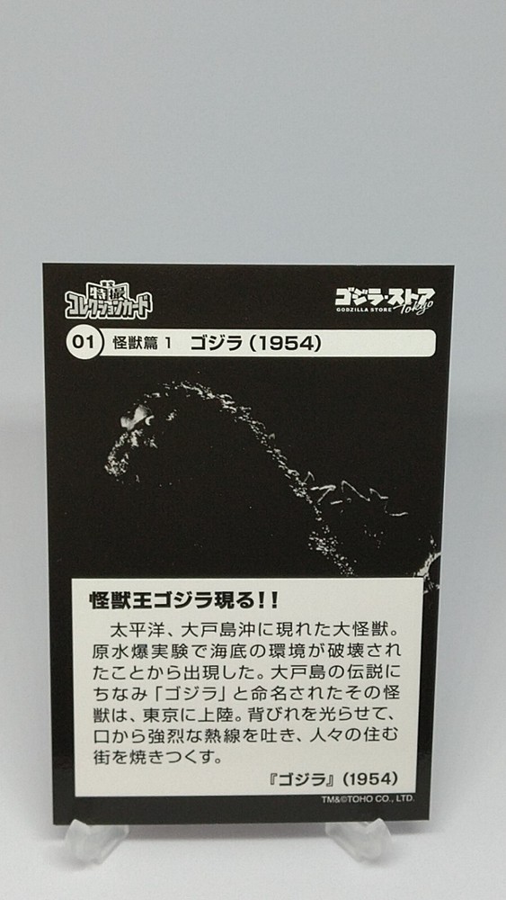 Godzilla Toho Tokusatsu Collection Card No.1 Godzilla Store Tokyo Japanese Description Please see the picture for the details of damages and dirt or ask us before your purchase. 100% Authentic or Money Back Guaranteed. (Do not worry you are protected by eBay and eBay Managed Payments) See the pictures for more details. If you have any question about the condition, accessories, or anything about the product, please feel free to message us. We are glad to answer all your concerns. Payment Same as ebay payment method. Shipping Economy shipping: Delivery time will be about 11 - 23 days. Standard shipping: Delivery time will be about 5 - 10 days. Expedited shipping: Delivery time will be about 1 - 4 days. Terms of Sale Money back guarantee within 30 days if returned by customer. We would not be able to accept your bid if you; 1) Don't have a PayPal account. 2) Have unpaid items reported. 3) Have a primary shipping address in countries you don't ship to. 4) Have reportedly violated eBay policies. 5) Have a Feedback score lower than the number you specify. International Buyers - Please Note: Import duties, taxes and charges are not included in the item price or shipping charges. These charges are the buyer's responsibility. Please check with your country's customs office to determine what these additional costs will be prior to bidding/buying. These charges are normally collected by the delivering freight (shipping) company or when you pick the item up - do not confuse them for additional shipping charges.