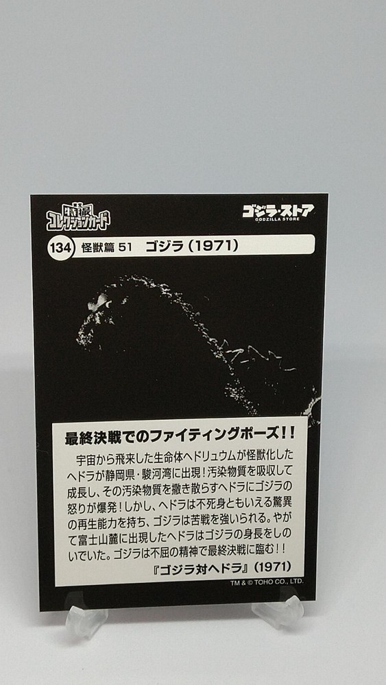 Godzilla Toho Tokusatsu Collection Card No.134 Godzilla Store Tokyo Japanese Description Please see the picture for the details of damages and dirt or ask us before your purchase. 100% Authentic or Money Back Guaranteed. (Do not worry you are protected by eBay and eBay Managed Payments) See the pictures for more details. If you have any question about the condition, accessories, or anything about the product, please feel free to message us. We are glad to answer all your concerns. Payment Same as ebay payment method. Shipping Economy shipping: Delivery time will be about 11 - 23 days. Standard shipping: Delivery time will be about 5 - 10 days. Expedited shipping: Delivery time will be about 1 - 4 days. Terms of Sale Money back guarantee within 30 days if returned by customer. We would not be able to accept your bid if you; 1) Don't have a PayPal account. 2) Have unpaid items reported. 3) Have a primary shipping address in countries you don't ship to. 4) Have reportedly violated eBay policies. 5) Have a Feedback score lower than the number you specify. International Buyers - Please Note: Import duties, taxes and charges are not included in the item price or shipping charges. These charges are the buyer's responsibility. Please check with your country's customs office to determine what these additional costs will be prior to bidding/buying. These charges are normally collected by the delivering freight (shipping) company or when you pick the item up - do not confuse them for additional shipping charges.