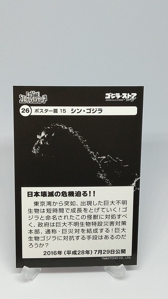 Godzilla Toho Tokusatsu Collection Card No.26 Godzilla Store Tokyo Japanese Description Please see the picture for the details of damages and dirt or ask us before your purchase. 100% Authentic or Money Back Guaranteed. (Do not worry you are protected by eBay and eBay Managed Payments) See the pictures for more details. If you have any question about the condition, accessories, or anything about the product, please feel free to message us. We are glad to answer all your concerns. Payment Same as ebay payment method. Shipping Economy shipping: Delivery time will be about 11 - 23 days. Standard shipping: Delivery time will be about 5 - 10 days. Expedited shipping: Delivery time will be about 1 - 4 days. Terms of Sale Money back guarantee within 30 days if returned by customer. We would not be able to accept your bid if you; 1) Don't have a PayPal account. 2) Have unpaid items reported. 3) Have a primary shipping address in countries you don't ship to. 4) Have reportedly violated eBay policies. 5) Have a Feedback score lower than the number you specify. International Buyers - Please Note: Import duties, taxes and charges are not included in the item price or shipping charges. These charges are the buyer's responsibility. Please check with your country's customs office to determine what these additional costs will be prior to bidding/buying. These charges are normally collected by the delivering freight (shipping) company or when you pick the item up - do not confuse them for additional shipping charges.