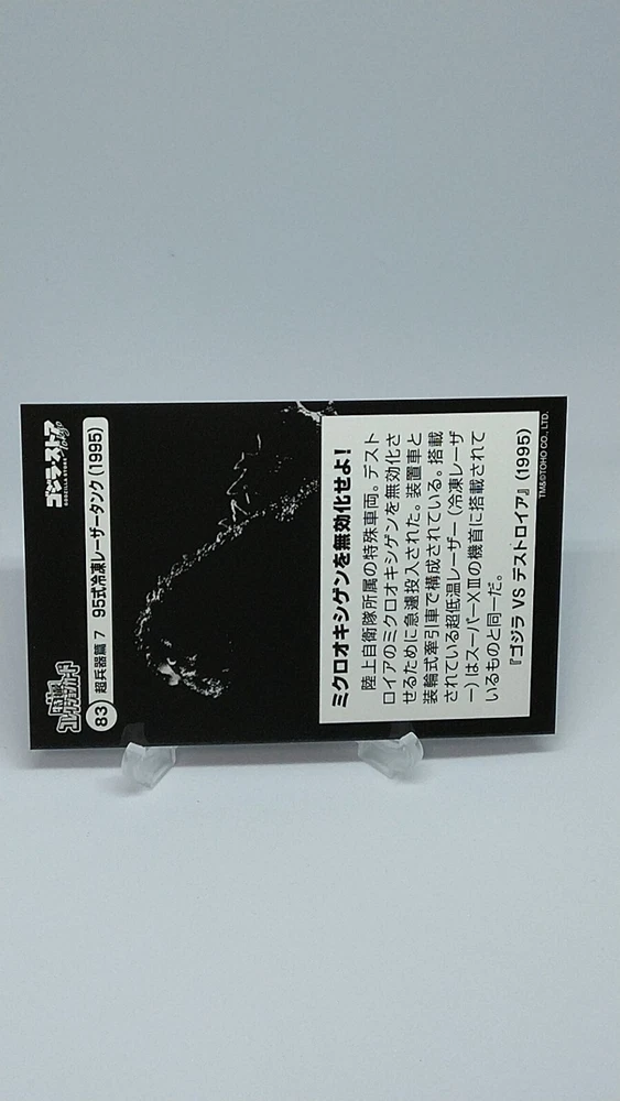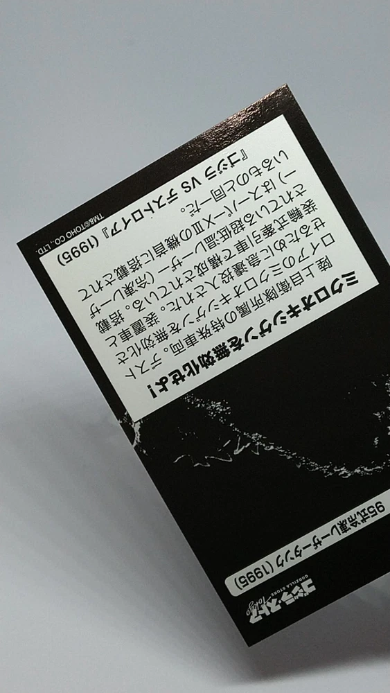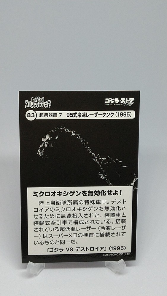 Godzilla Toho Tokusatsu Collection Card No.83 Godzilla Store Tokyo Japanese Description Please see the picture for the details of damages and dirt or ask us before your purchase. 100% Authentic or Money Back Guaranteed. (Do not worry you are protected by eBay and eBay Managed Payments) See the pictures for more details. If you have any question about the condition, accessories, or anything about the product, please feel free to message us. We are glad to answer all your concerns. Payment Same as ebay payment method. Shipping Economy shipping: Delivery time will be about 11 - 23 days. Standard shipping: Delivery time will be about 5 - 10 days. Expedited shipping: Delivery time will be about 1 - 4 days. Terms of Sale Money back guarantee within 30 days if returned by customer. We would not be able to accept your bid if you; 1) Don't have a PayPal account. 2) Have unpaid items reported. 3) Have a primary shipping address in countries you don't ship to. 4) Have reportedly violated eBay policies. 5) Have a Feedback score lower than the number you specify. International Buyers - Please Note: Import duties, taxes and charges are not included in the item price or shipping charges. These charges are the buyer's responsibility. Please check with your country's customs office to determine what these additional costs will be prior to bidding/buying. These charges are normally collected by the delivering freight (shipping) company or when you pick the item up - do not confuse them for additional shipping charges.