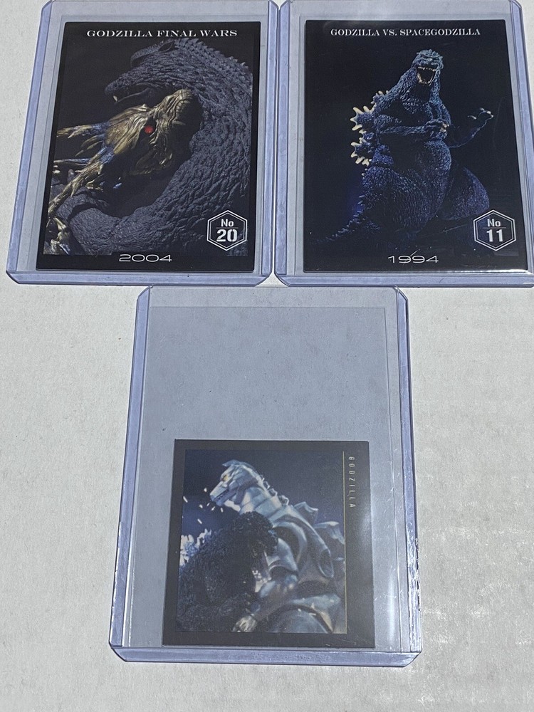 This lot of Godzilla Toho Trading Cards is a must-have for any fan of the iconic monster movie franchise. The set includes two standard-sized cards and a mini Mecha II, all of which are authentic and come from Japan. The cards feature various scenes and characters from the movies, making them a great addition to any collection. This lot includes two non-sport trading cards featuring Godzilla. 2 of these cards are from a factory sealed pack and are made in Japan by Toho. The mini was also shipped from Japan. They are perfect for collectors or anyone who loves the Godzilla franchise. The 2 toho cards are straight from a factory sealed pack, were sleeved and top loaded directly. A portion of this sale will be donated to ASPCA.