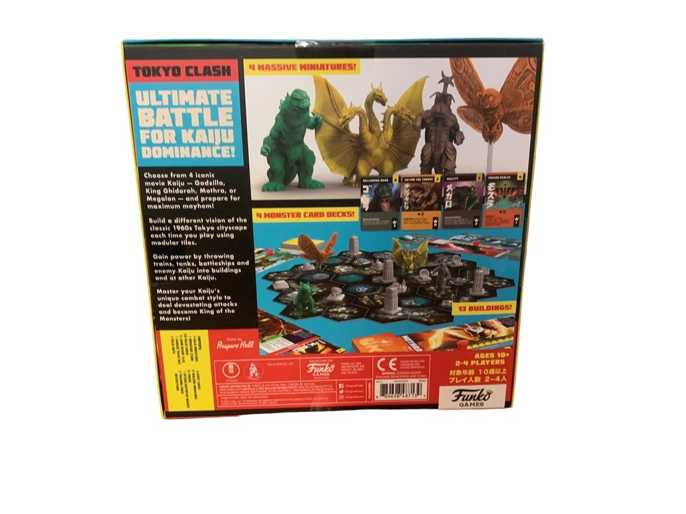 Get ready to take on Godzilla and his monstrous foes in this exciting strategy board game! This brand new game from Funko is perfect for 2 players and features the iconic characters from the Godzilla universe. With a focus on strategic gameplay, players must build and control their own city while battling it out with their opponents. The game board and pieces are intricately designed to capture the epic scale of the Godzilla universe, and the gameplay is easy to learn but difficult to master. Whether you're a longtime fan of the franchise or just looking for a new and exciting board game, Godzilla: Tokyo Clash is sure to deliver hours of fun and excitement. Don't miss out on the chance to own this fantastic game!