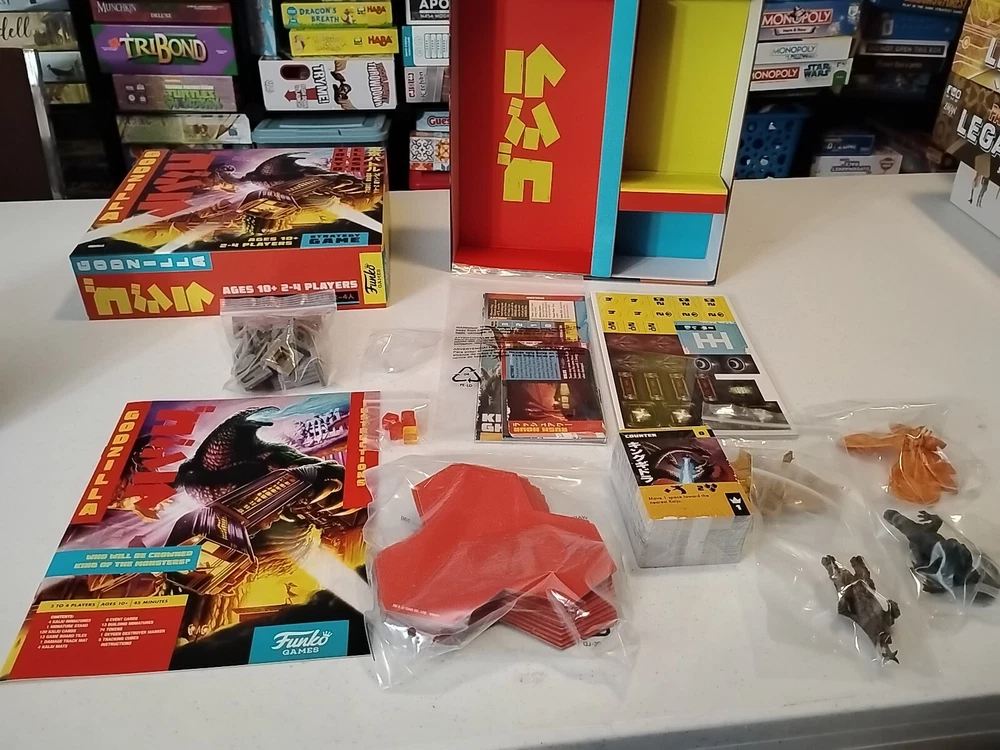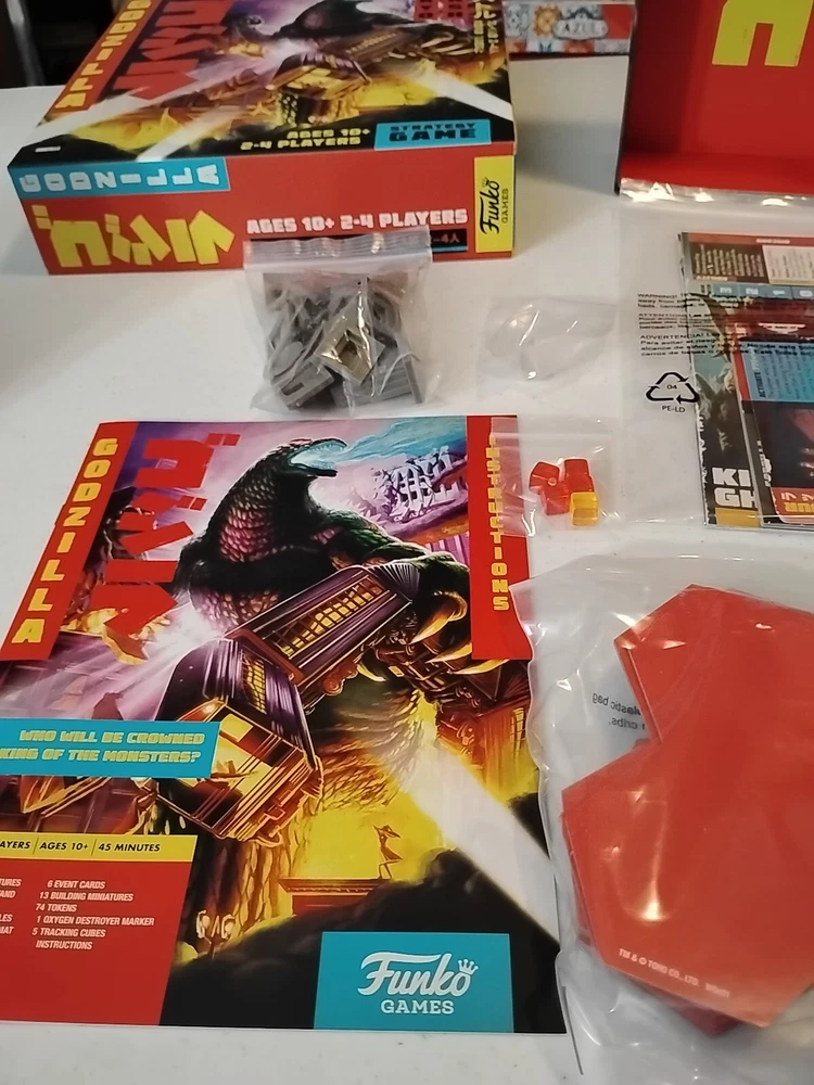 Like New! 100% Complete! Mint condition! Cards and punch-outs still in original shrink wrap! Experience the thrill of destruction and strategy with the Godzilla Tokyo Clash Board Game by Funko Games. This game is perfect for fans of strategy and board games alike. With a minimum of 2 players, you and your friends can battle it out to see who can destroy the most buildings and kill the most monsters. The game features a colorful and detailed game board, as well as various cards and tokens to keep track of your progress. Recommended for ages 10 and up, this game will provide hours of entertainment for you and your friends. So gather your Kaiju and get ready for the ultimate battle!