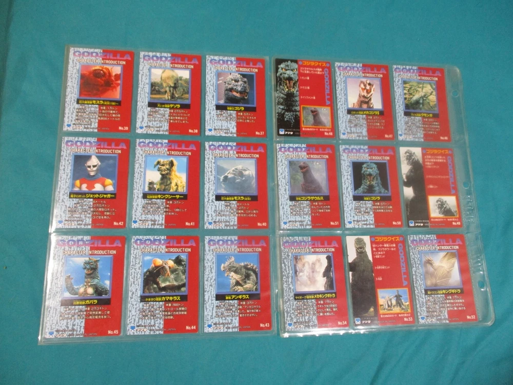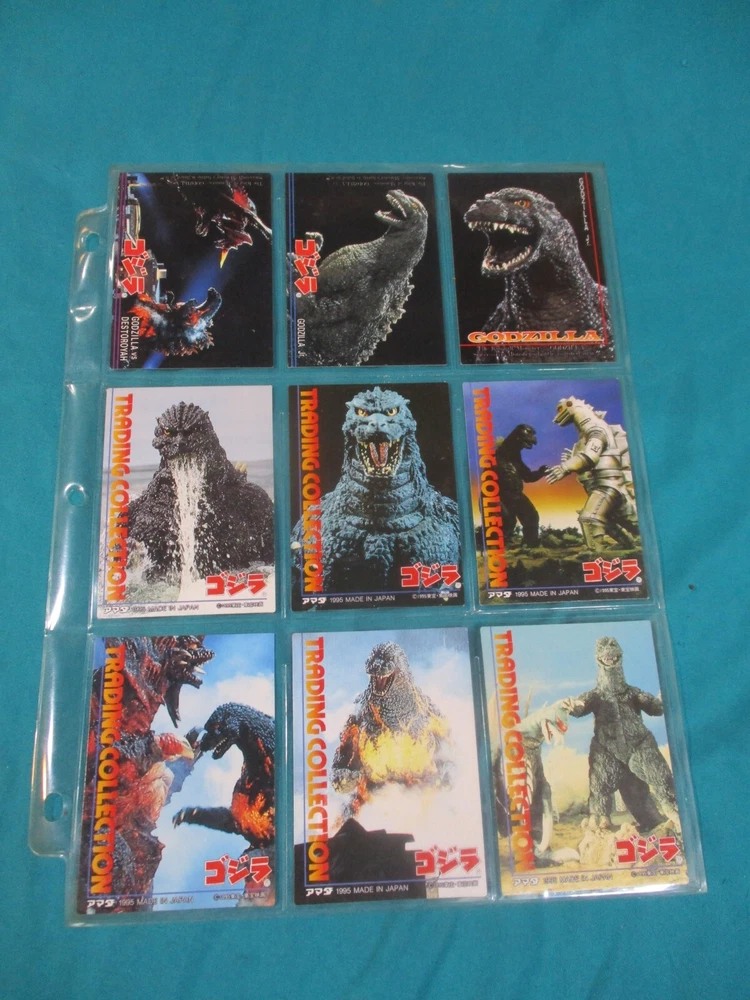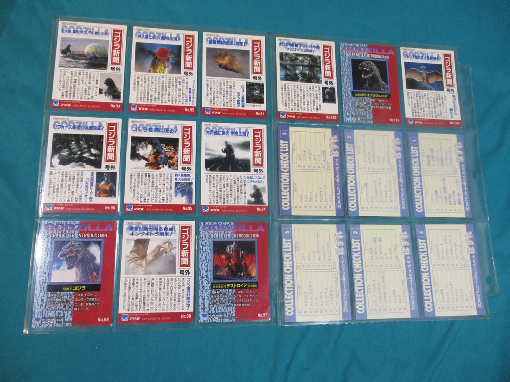 1995 JPP/Amada Godzilla Trading Collection. Includes 102 card set (some are prisms as shown in images), Checklists 1-8 + 3 Hologram cards (Godzilla, Space Godzilla and Desotroyah). Check out all of my Kaiju and Monster trading card lots going live on here tonight! I do combine shipping!