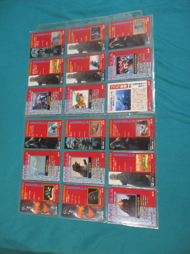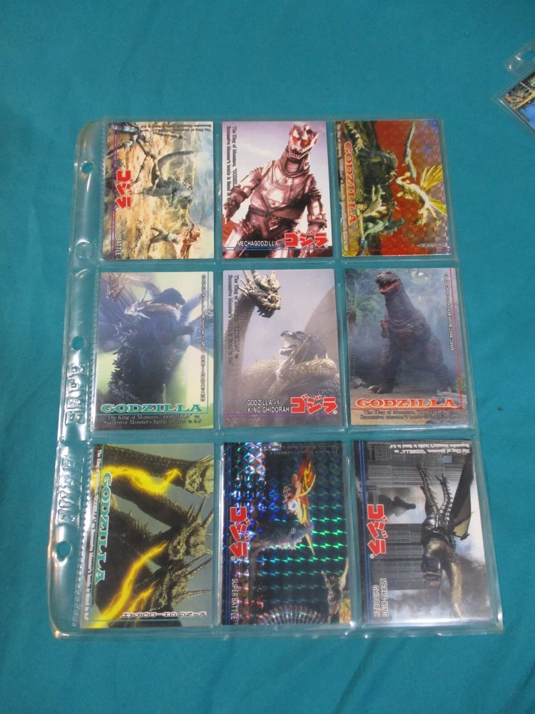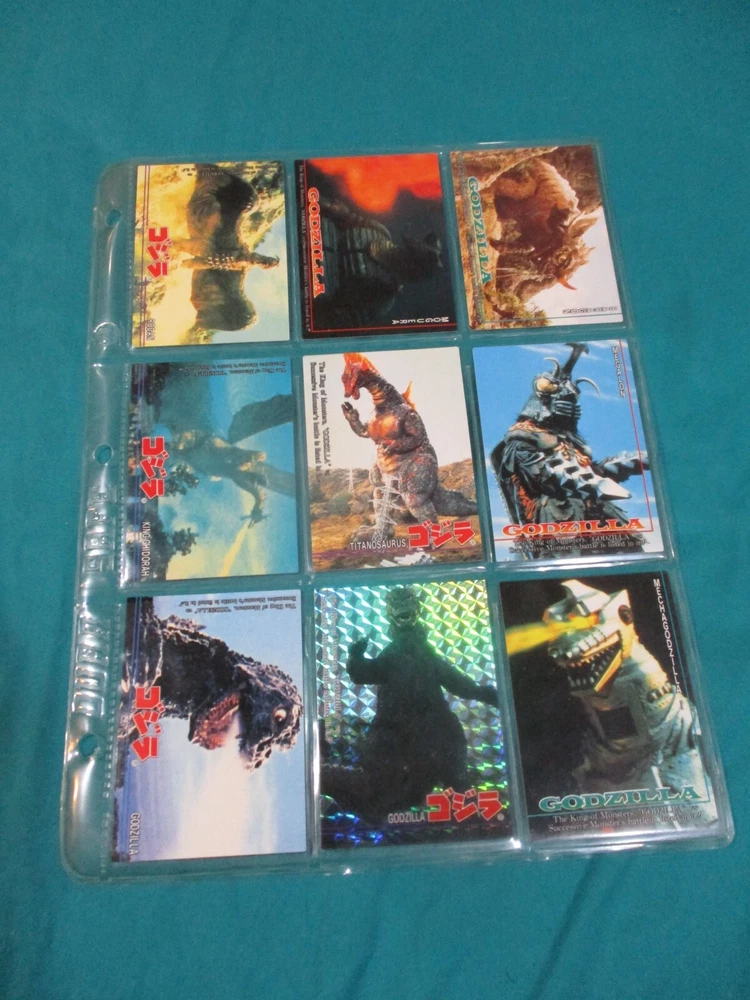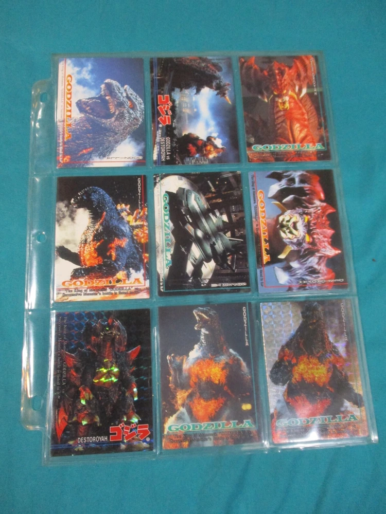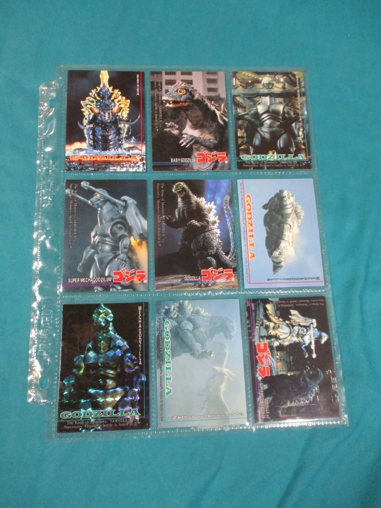 This complete Godzilla trading card set is a must-have for any kaiju fan! The collection includes 102 cards with stunning prism designs, plus three rare hologram inserts featuring Godzilla, Space Godzilla, and Desotroyah. The checklists make it easy to track your collection, and the seller offers combined shipping—perfect for expanding your monster card collection. A fantastic piece of nostalgia for 90s Godzilla enthusiasts!