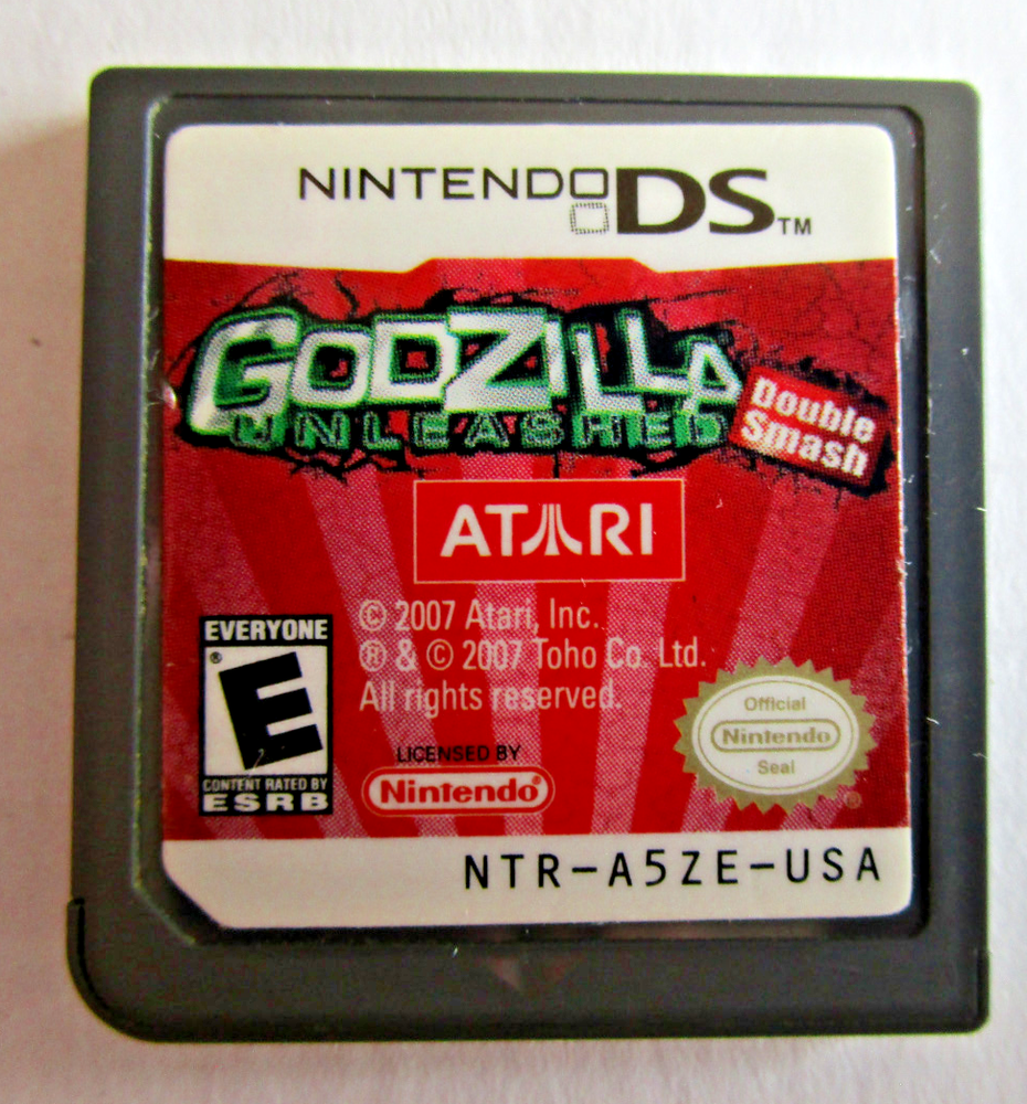 In a departure from the console versions of Godzilla: Unleashed, Toho's flagship monster stomps onto DS as a side-scrolling combat game. Double Smash features 3D graphics and the ability to team-up with a second monster from Toho's cinematic stable. The handheld's top screen displays the sky, where monsters such as Mothra or Rodan take flight, while the touch screen offers a view from the ground.<br><br>Wireless cooperative play has one friend guiding a flying monster as the other controls a terrestrial creature. Solo players can freely switch between the two by tapping the handheld's shoulder buttons. The default control scheme has each monster's melee attacks initiated by the face buttons, with ranged attacks activated by tapping the stylus. Building up a "surge meter" in combat allows monsters to activate more powerful attacks that can hit multiple enemies. Game cartridge only in this listing. Vintage, rare and hard to find game in this good working condition!