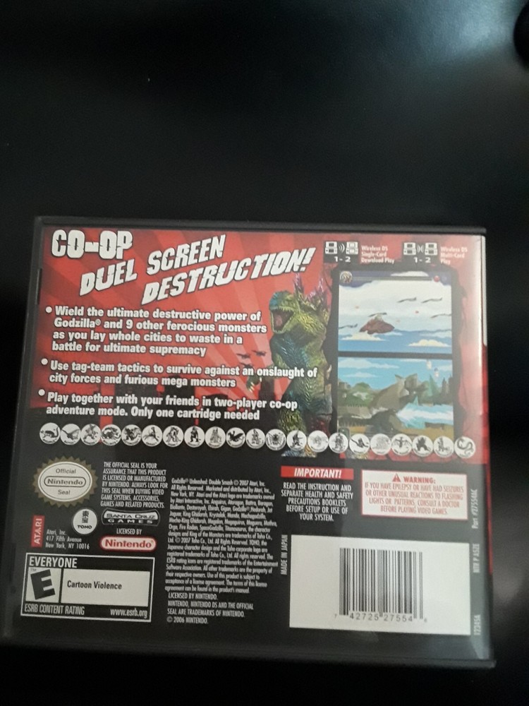 "Godzilla Unleashed: Double Smash" for the Nintendo DS, released in 2007, is an action-packed video game developed by Atari Inc. with an E-Everyone rating. This game allows players to take on the role of Godzilla and battle other iconic monsters in a series of challenging levels. With exciting gameplay and engaging graphics, "Godzilla Unleashed: Double Smash" offers a thrilling experience for fans of the action & adventure genre.