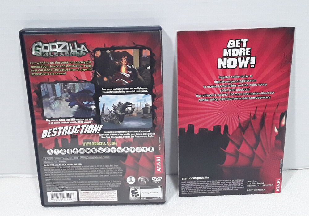 Up for sale is a Godzilla: Unleashed PS2 (Sony PlayStation 2, 2007) CIB Manual Tested. It is being sold as used but is in good condition - some wear to the upper corner of the case. Disc is in Excellent condition. Please ask any questions before buying. See photos for additional details and thanks for looking.